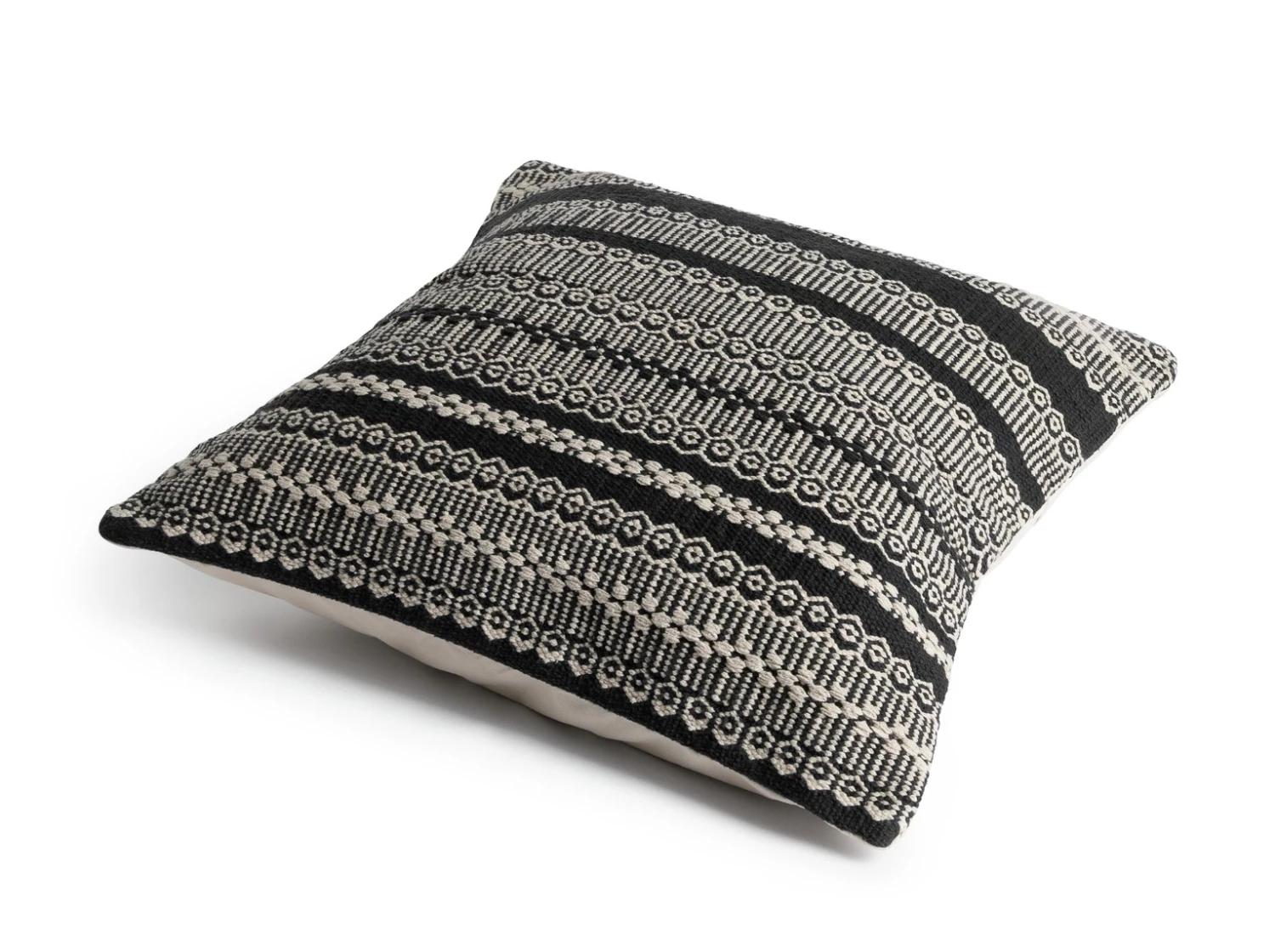 The Agnes black and natural striped 58 x 58cm cushion is beautifully hand woven with a hardwearing, heavy textured weave. A stylish yet hard-wearing cushion, it comes with a plain cotton reverse and a soft cushion pad for upmost comfort. Part of the Agnes range, the cushion is available in various colours and is also available as a rug.