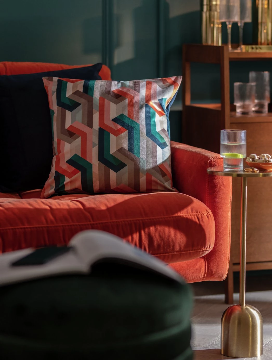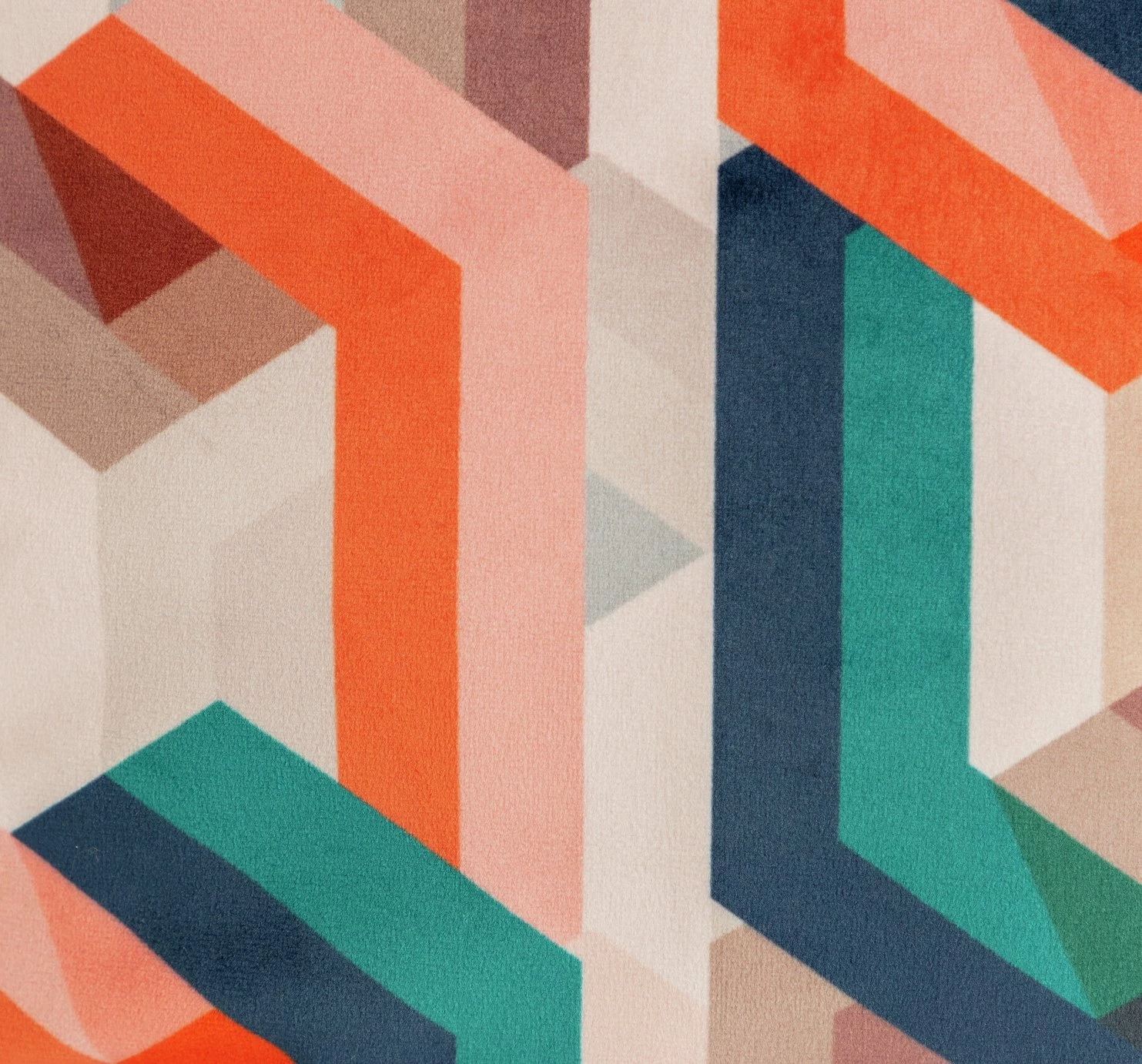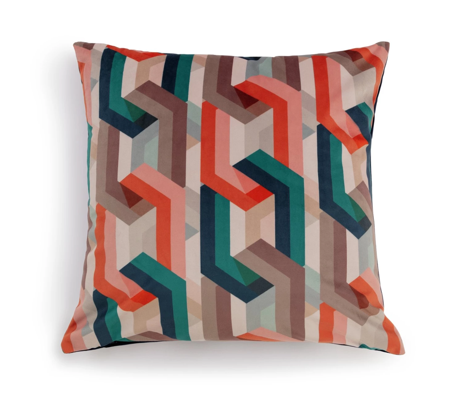Want some wow? Then choose our chain print, 3D geo cushion as an accent piece. Plump it up and put it down. Oh yes. Eye candy for the sofa. Bright on the front side, plain navy on the backside, in rich luxurious velvet. Easy to keep looking good with its removable zip cover. Is one enough?