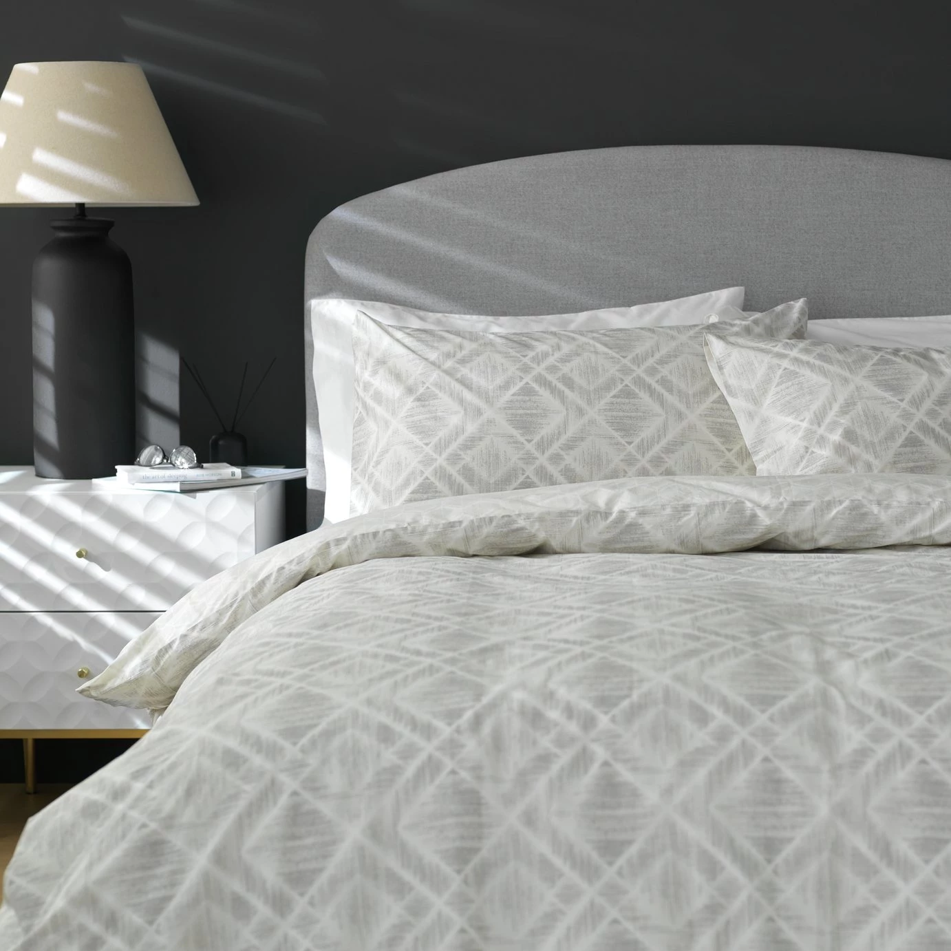 Go glam with our geo print bedding. Subtle and sophisticated, this elegant duvet set will bring a serene style to your space. Made from a 100% cotton, with a soft sheen, the laid-back pallet is ideal for a touch of luxe lounging. Fancy a change? Just flip over for a lighter colour combo. Slip in for a bit of refined relaxation.