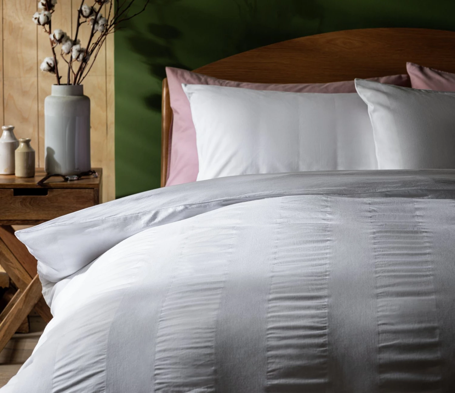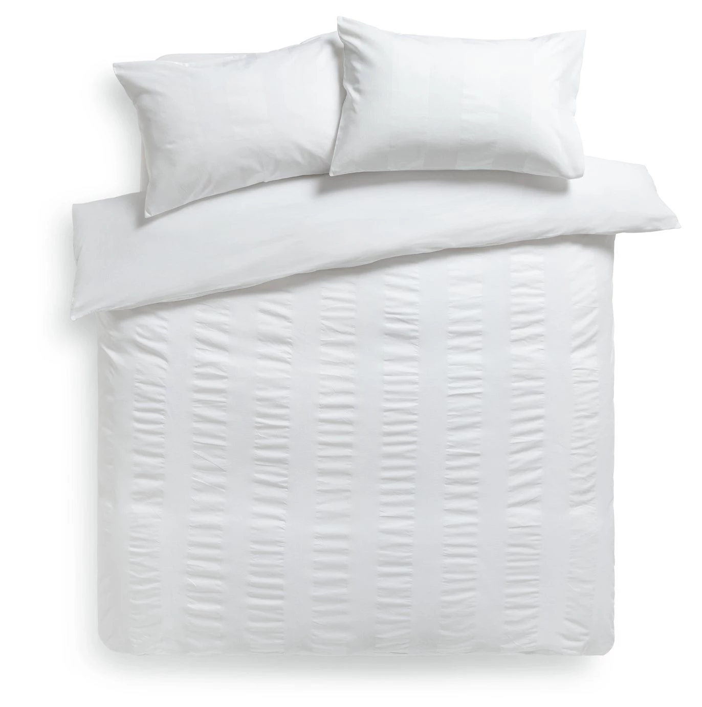 Fancy a boutique hotel look? This softly elegant reversible double duvet set delivers. It features a tactile textured waffle effect on one side, and a simple smooth style on the other. Made from 100% cotton, with a 300-thread count, it feels as luxurious as it looks. Comes with 2 matching pillowcases for head-to-toe style. A smart design you'll never tire of.