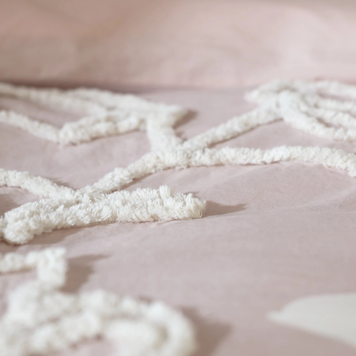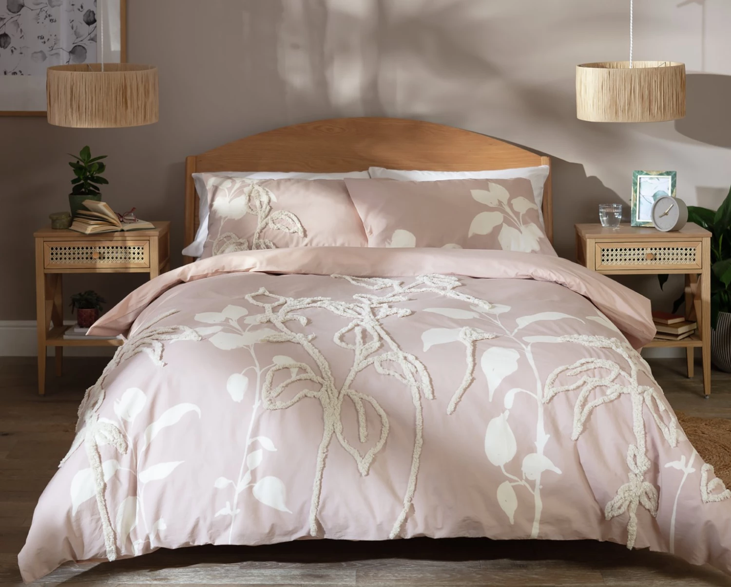 Enjoy a leafy luxury lie-in. With tactile tufted details on the duvet cover and a thread count of 180 throughout, this duvet set is as inviting as they come. Made from 100% cotton, it's super soft and breathable. This versatile set comes with 2 matching pillowcases which feature the leaf design but not the tufting detail for smooth and comfortable snoozes. Simply blissful.