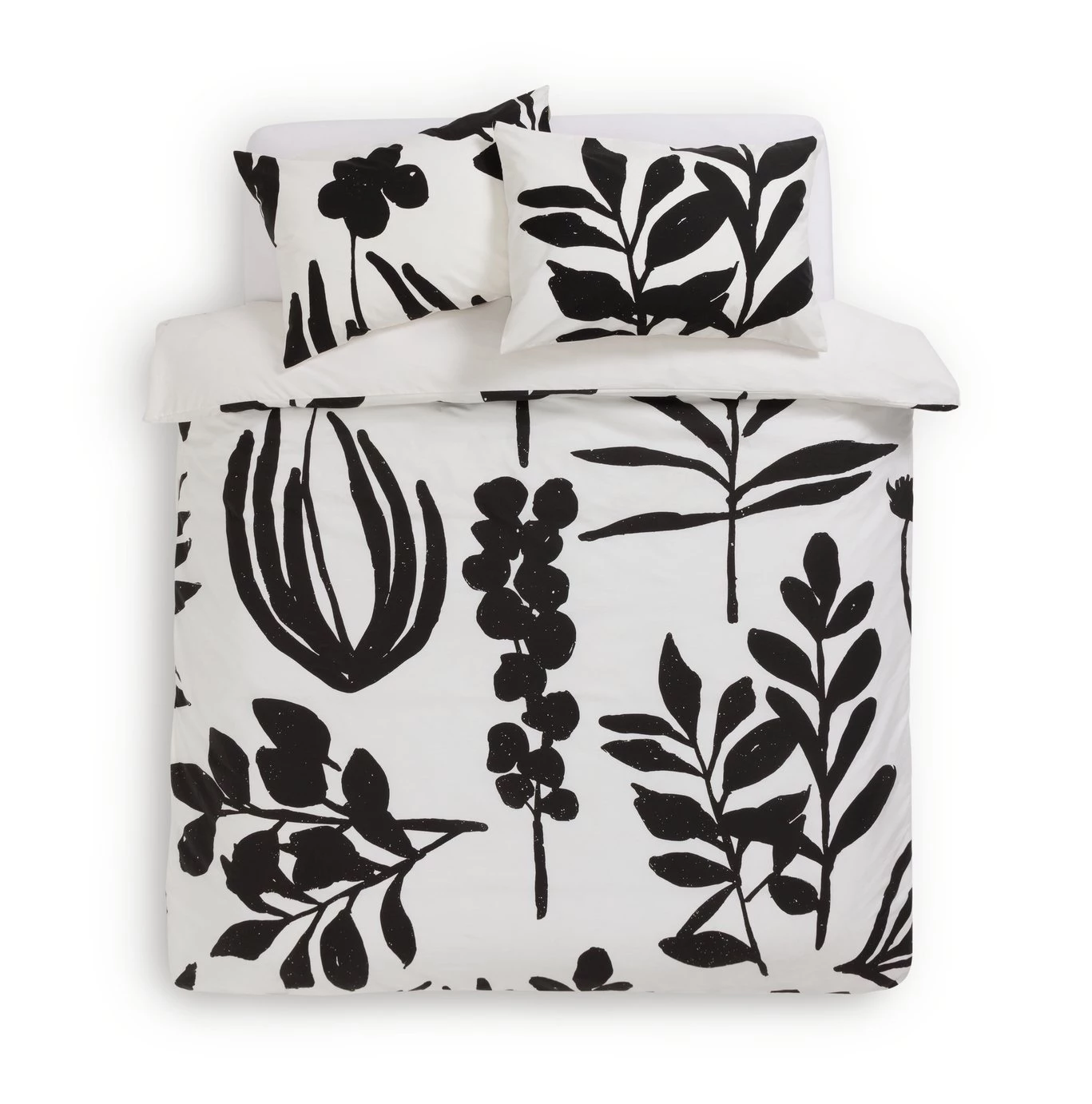 A botanical touch for your boudoir. Our dynamic duvet set features giant cut outs of leaves, flowers and blossoms. This bold monochrome design blooms in a neutral bedroom. The striking contrast of black and white create an ultra modern feel that's right on trend. Soft in 100% percale cotton, it's comfy and easy to care for in equal measure. Leaf me here, just 5 more minutes.