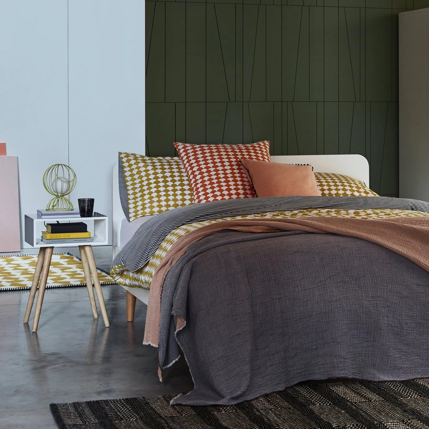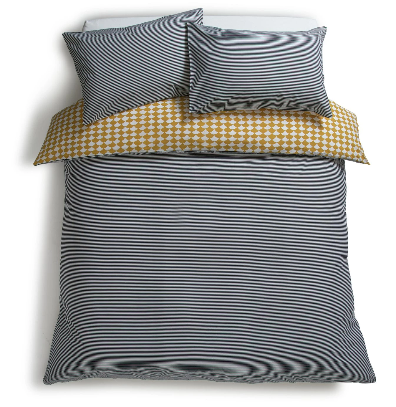 Designer's delight. Our Scallop bedlinens feature a mustard scallop graphic on one side and a grey pinstripe on the other. 100% cotton and a 180-thread count make them cosy to sink down into at the end of the day. A true design classic, Scallop fits with any decor style from Scandi to modern to country house. And this great value double set comes with 2 pillowcases and a duvet cover.