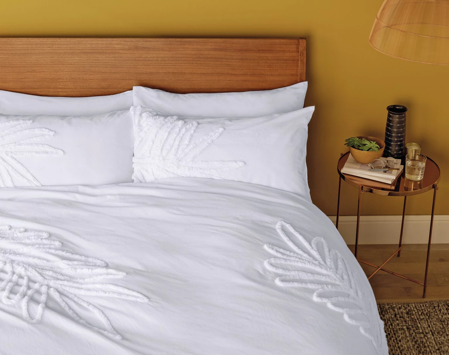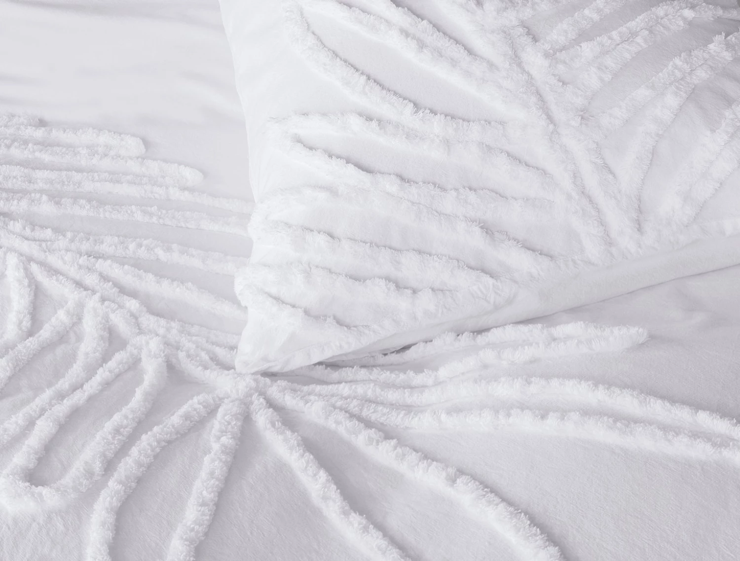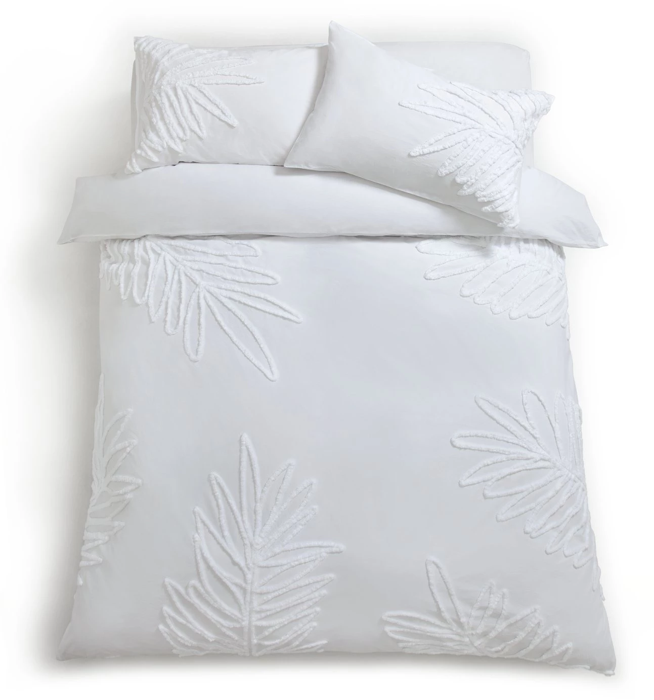 White on white, deluxe delight. Summer nights never looked nor felt so luxurious with our oversize, tufted leaves on an all-white background. Made from 100% percale cotton for a crisp look, with a 180 thread count for a smoother touch, you'll have no difficulty nodding off. With two matching pillowcases, we'll create a fabulous new look for your bedroom. And of course its soft, comfortable feel and breathable qualities are perfect for a great zzzz.