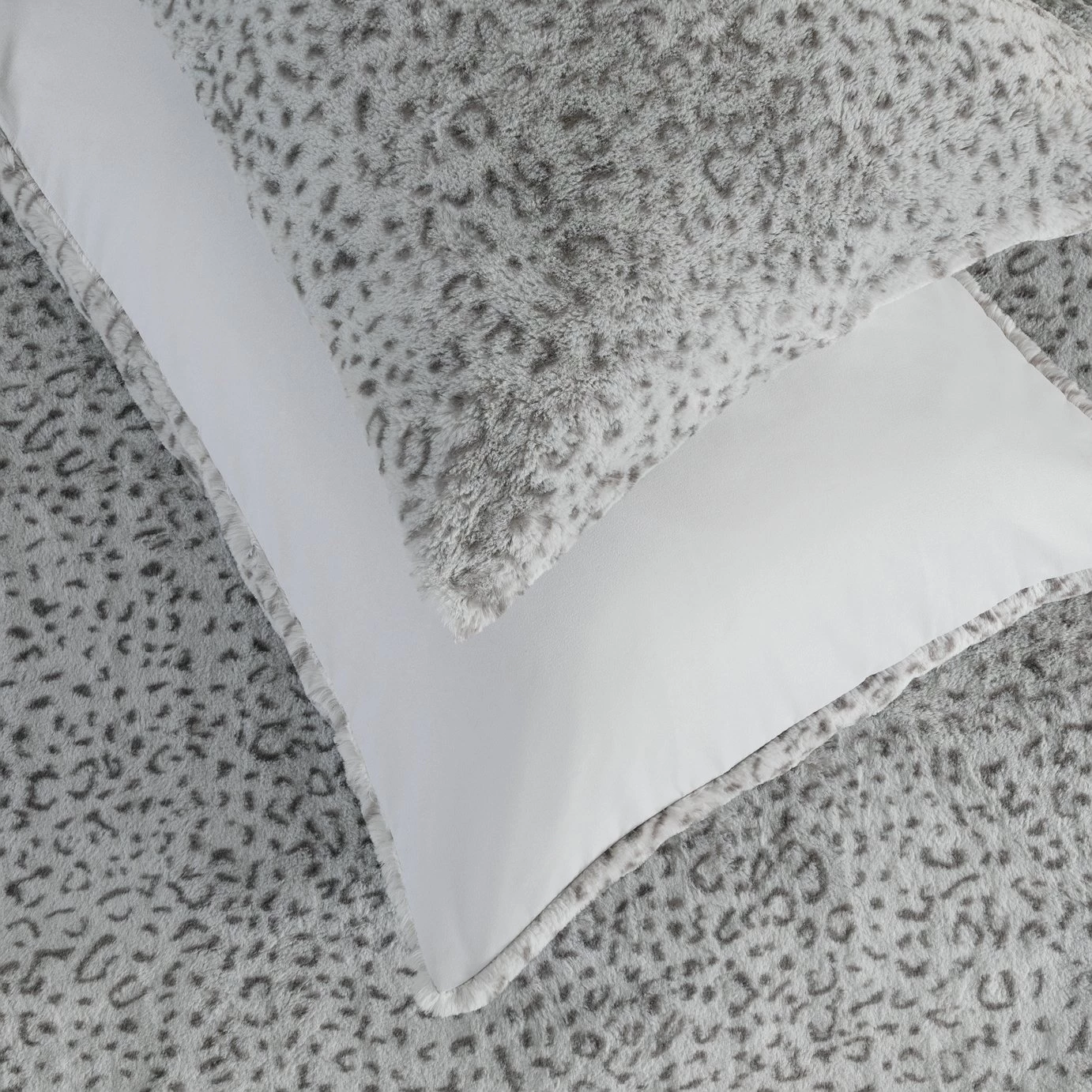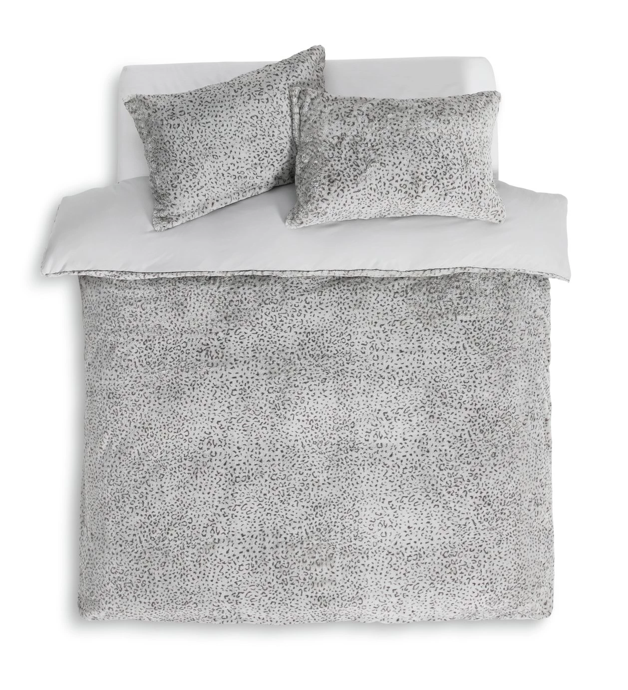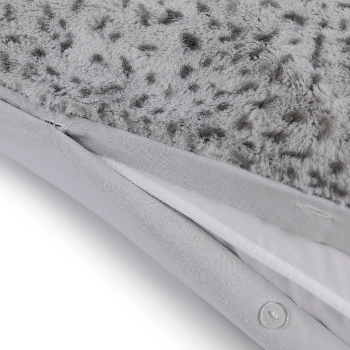 Fabulous fleece. Stay warm and cosy in this snuggle-worthy bedding set. Fluffy and soft, the set includes a single duvet cover with 1 matching pillowcase. The sumptuous snow leopard faux fur adds a luxe look to your bedroom. Wildly wonderful.