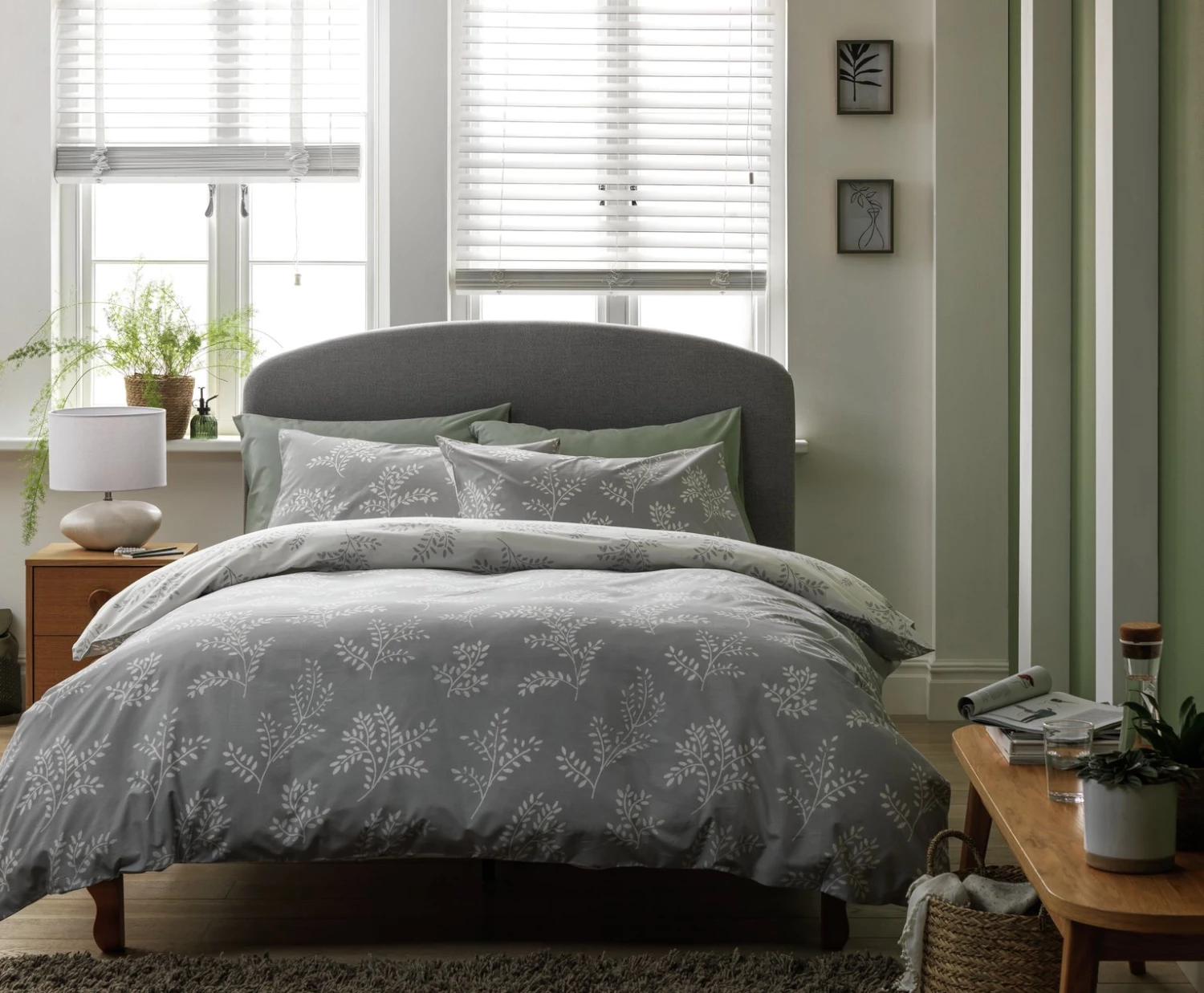 Fresh, floral and charming. Designed in tranquil grey and milky white, our polycotton single duvet set brings a peaceful, dreamy feel to your boudoir. This breathable and light bedding set helps keep your temperature steady to ensure a comfortable night's sleep. With a delicate flowery sprig pattern on either side, you can simply flip the set over whenever you fancy a new look. Snuggle in.