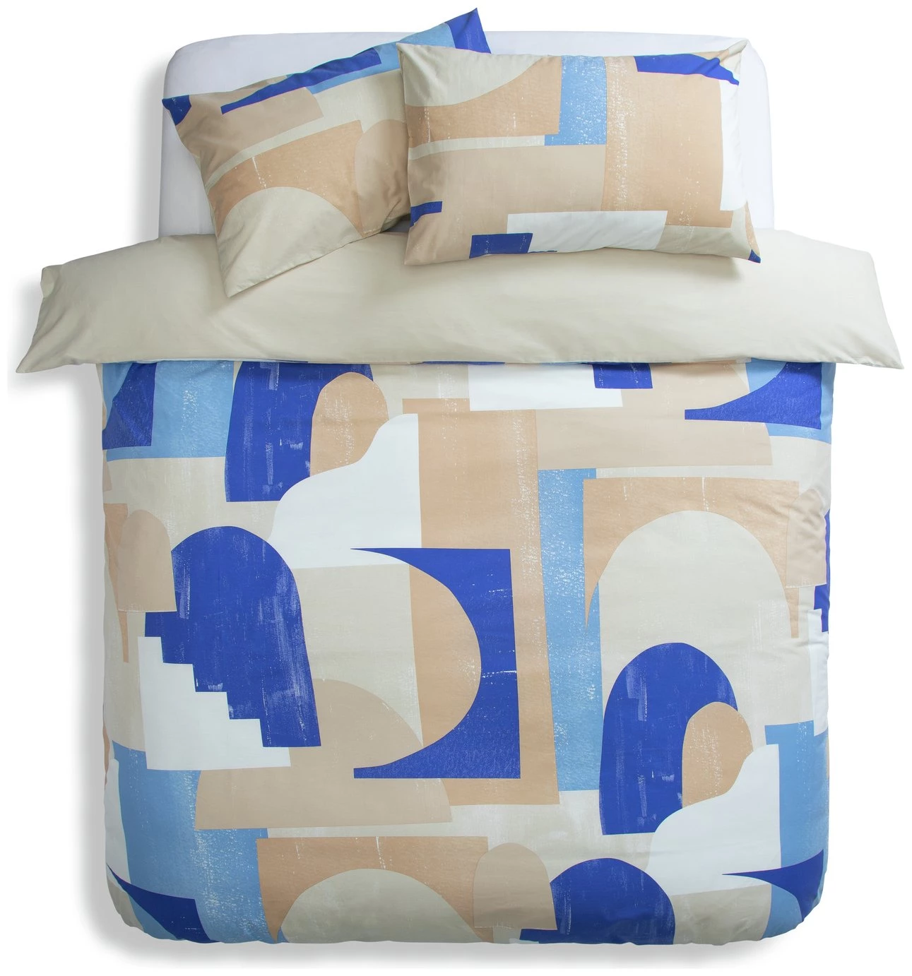 Two looks in one. For those of us who like to change it up now and then, this reversible duvet set is just the ticket. Abstract printed rings in blue and white bring a crisp modern look to your space. The soft, light easy care fabric is wonderfully inviting too. Pop on a bright contrast cushion or match with classic crisp white for an instant bedroom refresh. You just decide which side.