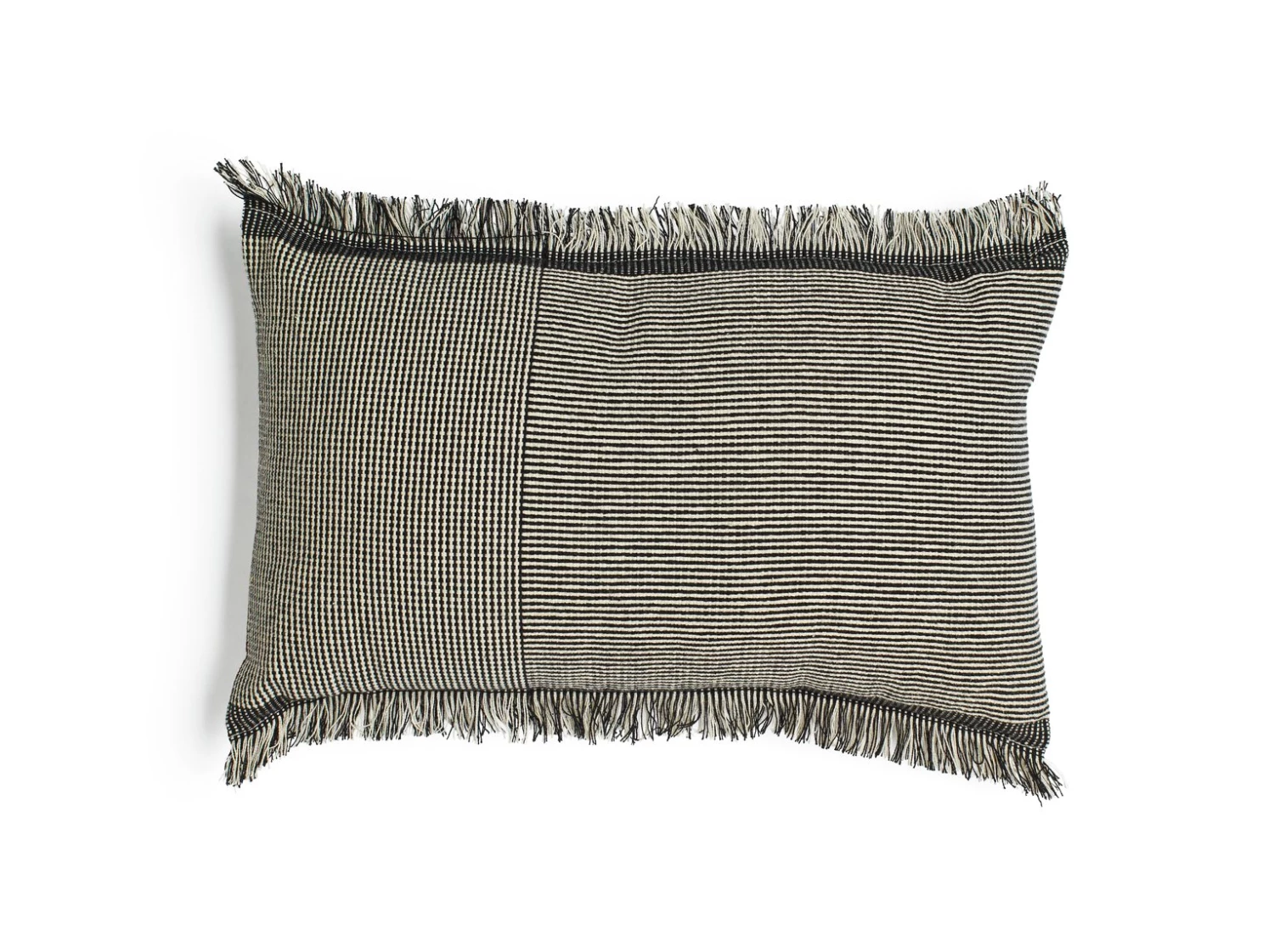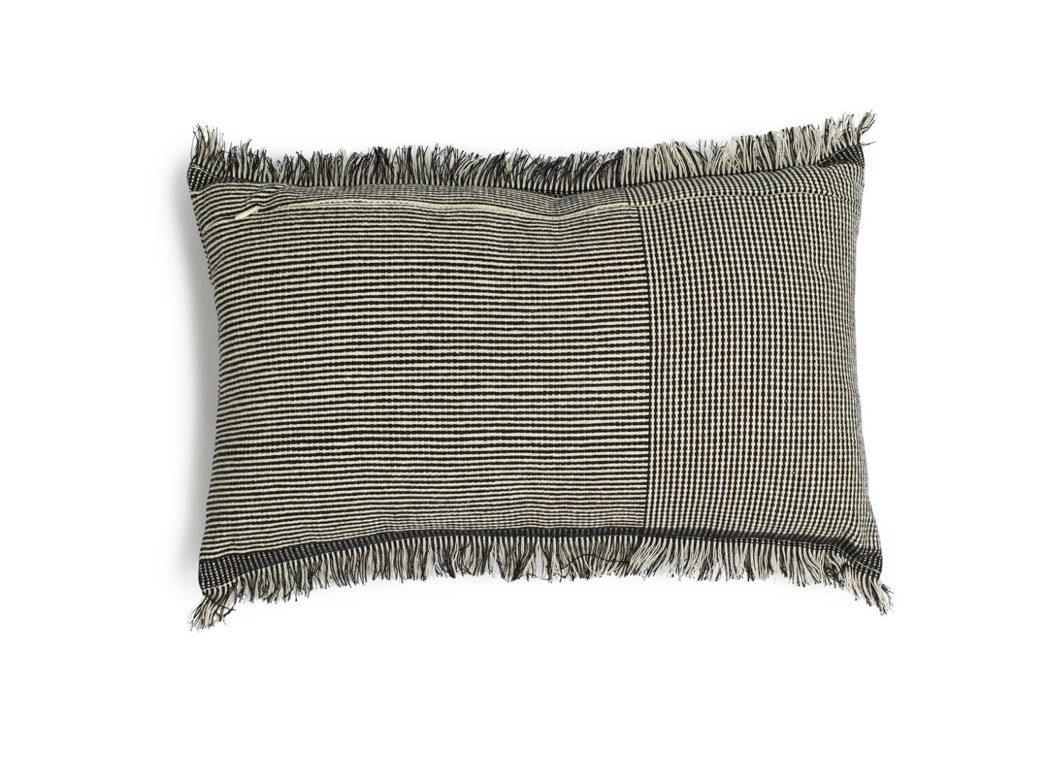 Tactile with two-tone tassels. Our monochrome striped cushion is super comfy with a touch of class. Crafted in 100% cotton, the woven cover is ultra soft to the touch. In cool grey and black, this modern cushion feels right at home with minimalist decor. Pop it on the sofa or bed to add a little loft living luxury. Style it up.