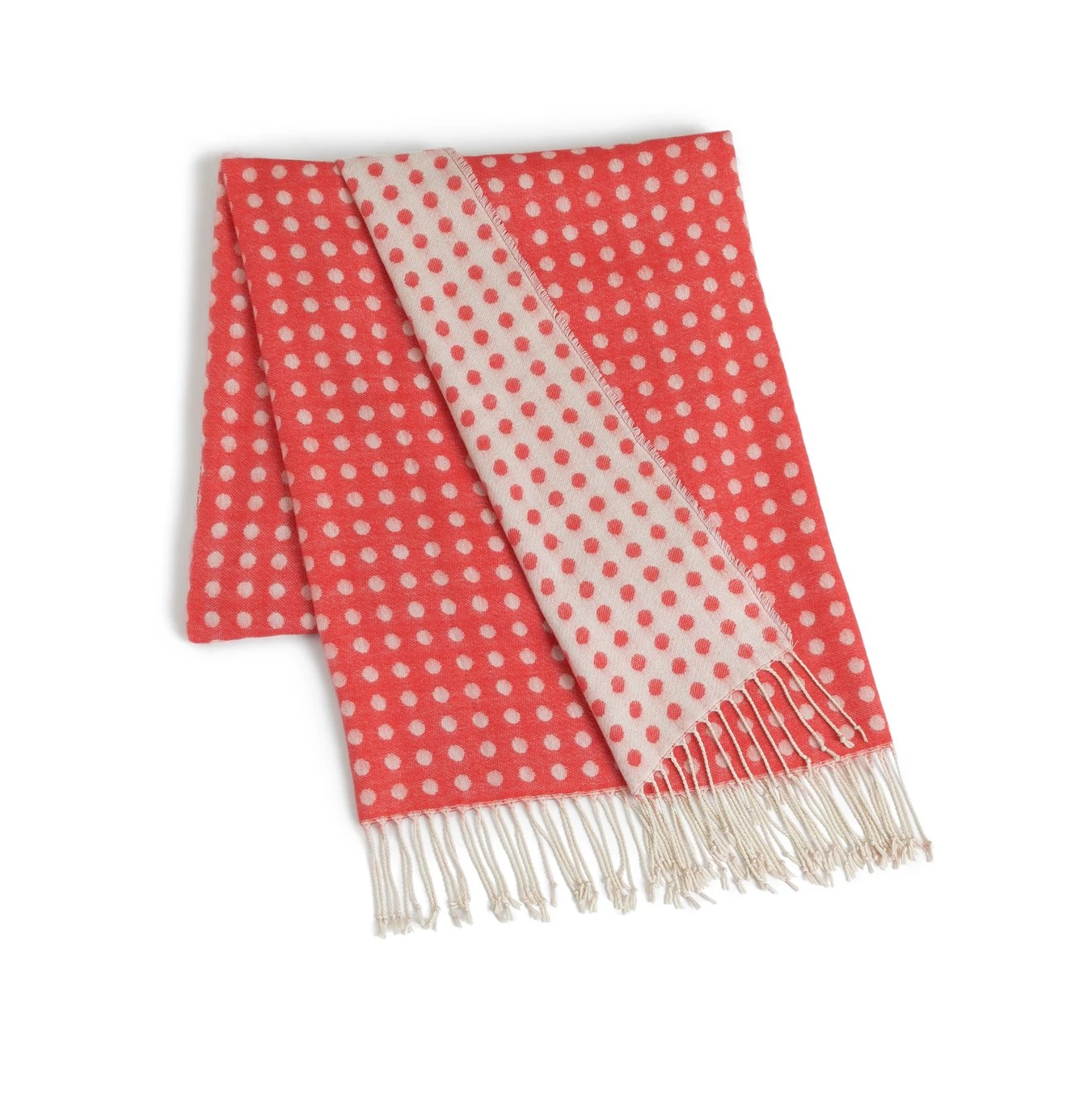 A real winter warmer. Drape this softly inviting festive throw over the end of your bed and say hello to Christmas. White spots on rich red are like snowflakes on Santa's suit. How jolly is that? White woolly fringes complete the seasonal look. It's reversible too, for when you want a spot of red on white. Ready to bring it ho, ho, home?