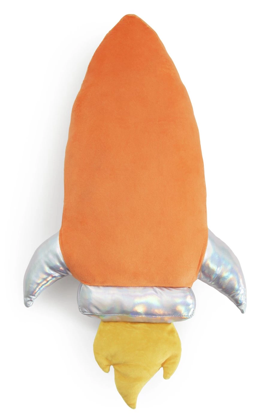 Get set for blast off with our fun rocket cushion. Budding astronauts will love the bright orange ship with iridescent silver wings and fiery flames bursting from its jets. The little spaceman peeking out of his porthole is cute too. This cosmic design will brighten up their bed in a flash. A great prop for story time, kids will love snuggling in as you take them on a journey through the stars. Destination? Dreamland. Commencing countdown.