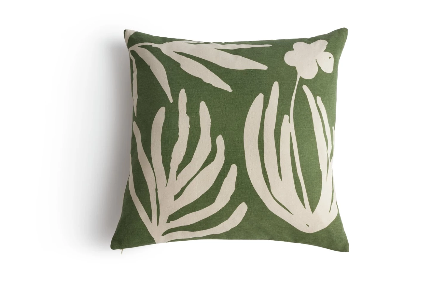 A fresh flourish. Our bold leaf print cushion gives your lounge or bedroom an organic lift. Gorgeous in green and cream, the botanical patterns on this zipped cover bring a burst of artistic flair. And in 100% cotton, it's ideal for those snuggly sofa moments. Pair with neutral decor for a modern and energising feel. It's the pick of the bunch.