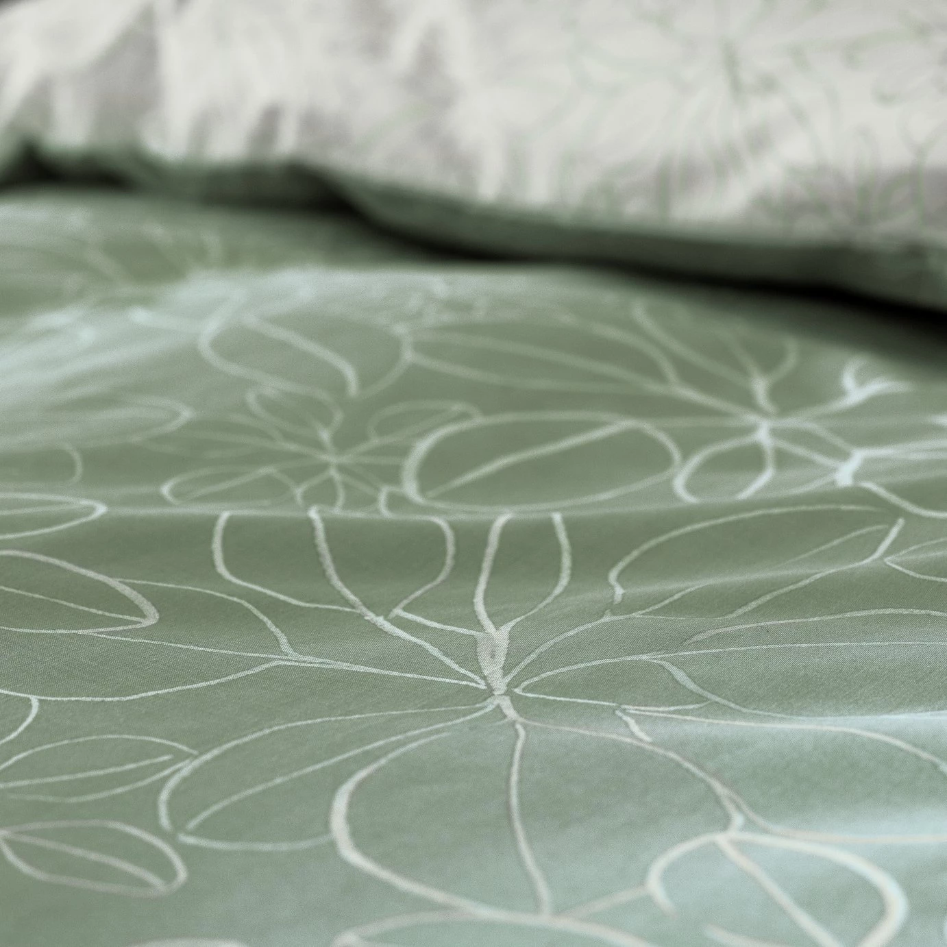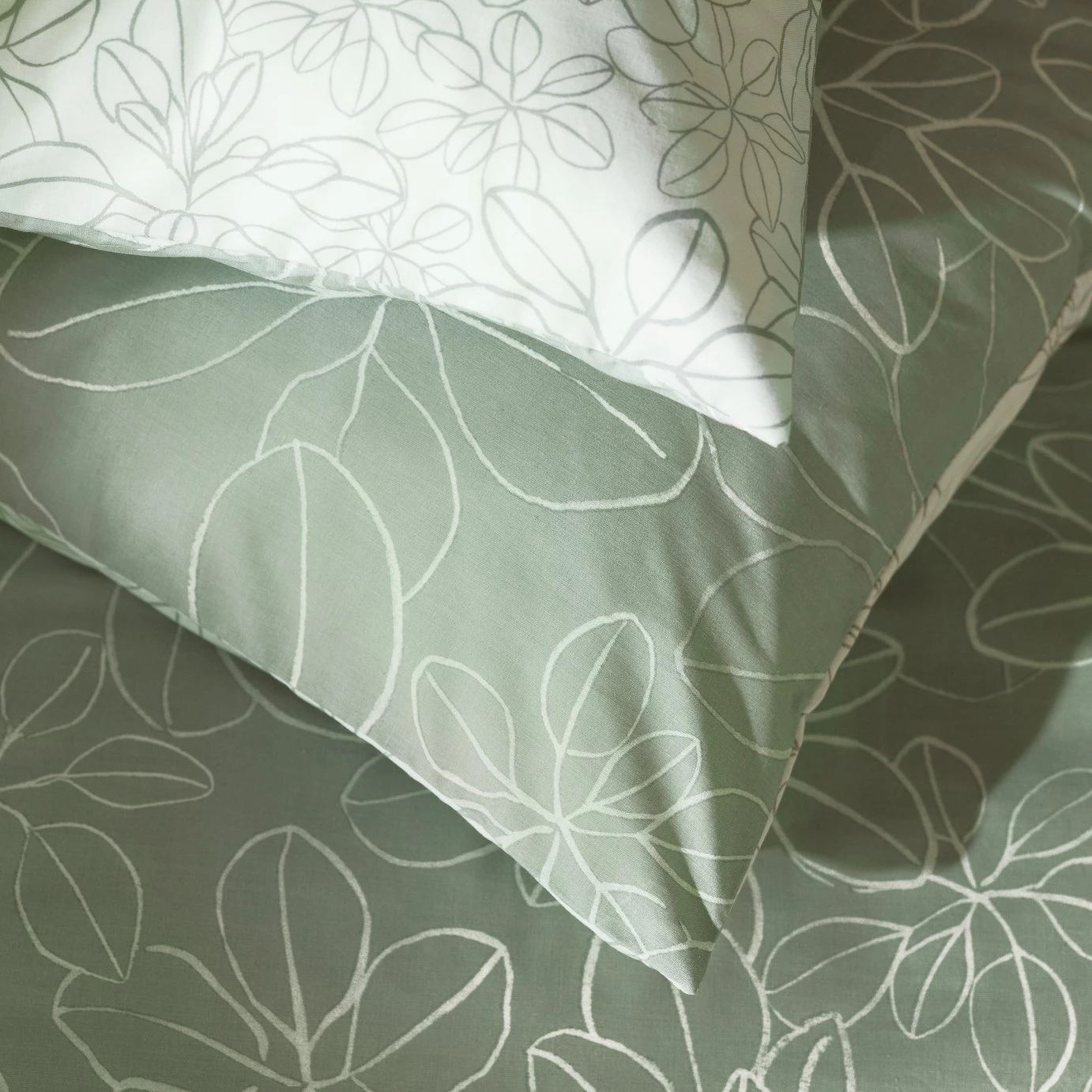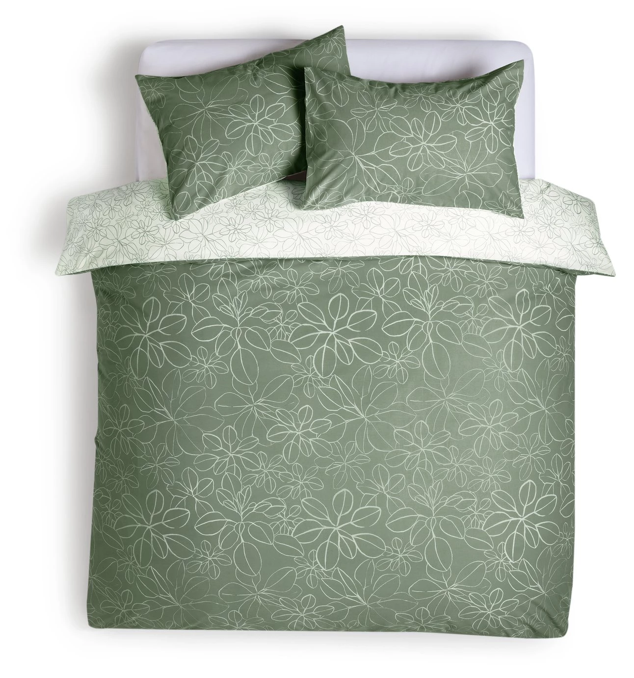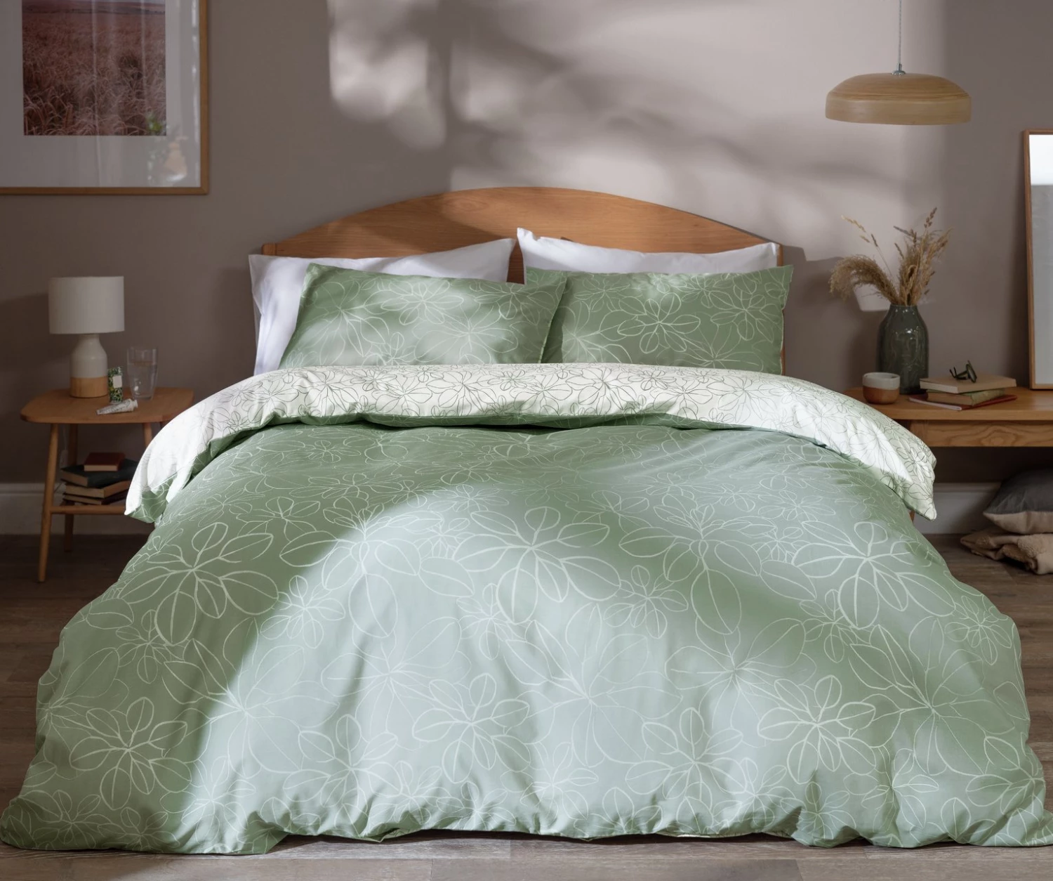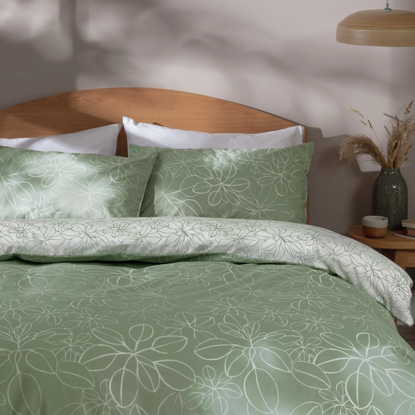 Lovely, leafy lie-ins. Our single duvet bed set in forest green is bursting with country charm. The graphic botanical print inspired by nature works beautifully with simple decors and neutral colour schemes. Fancy a refresh? Just flip over to change up your look with a cream and green design. Made from a comfy poly-cotton blend that's soft and durable, you'll have no difficulty nodding off. Comes as a set with a matching pillowcase.