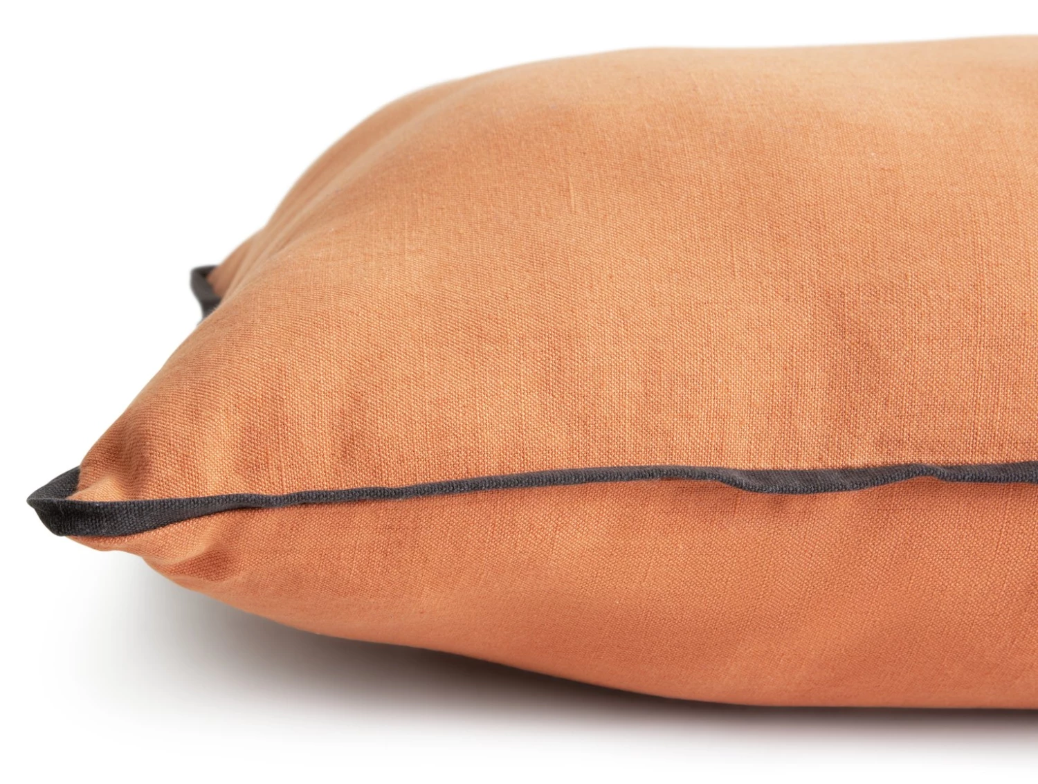 Bright and breezy. We love the laidback look of this cotton and linen blend cushion. On-trend in terracotta with flat black piping providing a striking contrast. And the plump filling keeps things comfy. A little escapism for your living room.