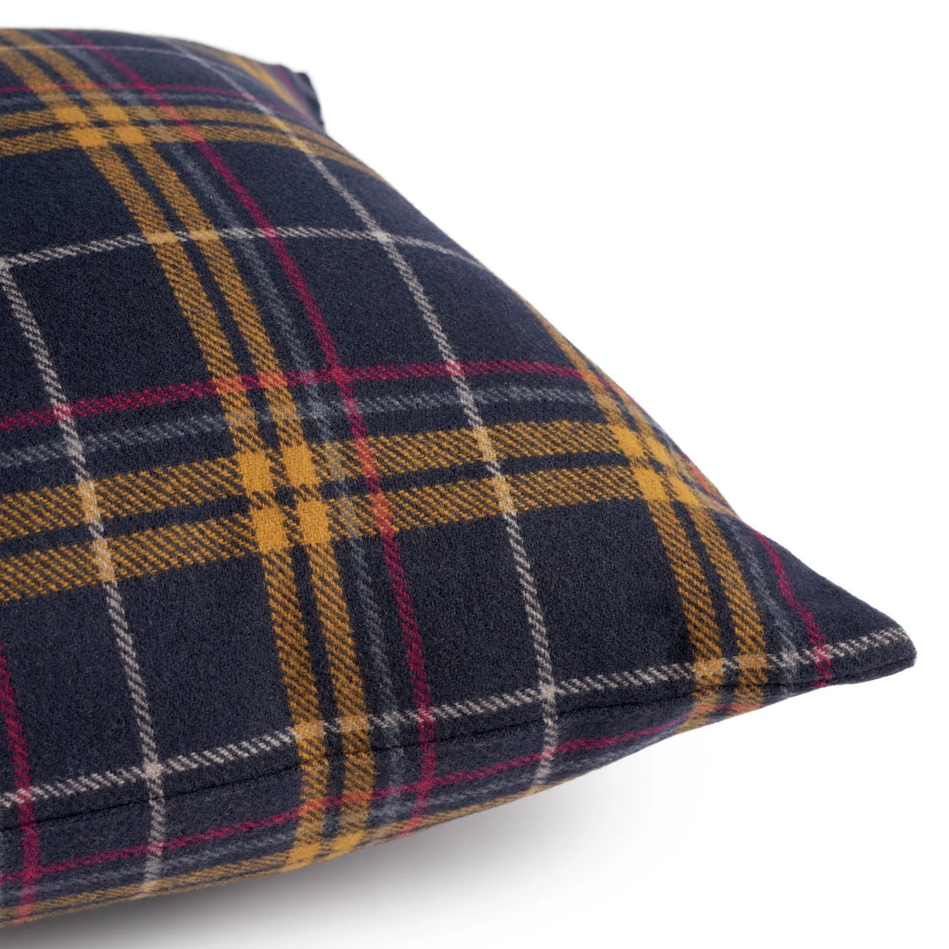 Highland hospitality. Settle into our tartan cushion, it's a wonderfully welcoming experience. The reassuring texture of real wool and a traditional pattern make this cosy piece a modern classic. Ideal for giving a touch of stately home chic to a sofa or favourite armchair. Light a log fire, add a matching throw and good book. Then drift off to your very own country estate.
