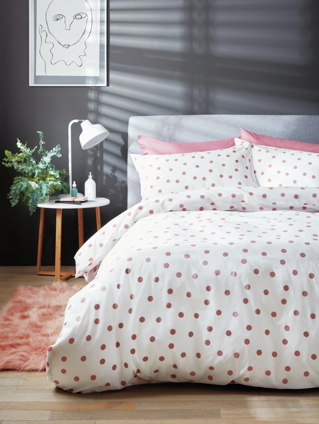 One pretty spot for a snooze. Our pink duvet set features dainty dots popping on a crisp white background. A fabulous design that's fresh and welcoming in a modern country boudoir. Woven from light and durable polycotton, this bedding is ultra cosy too. Time for a lie in, you've earned it.