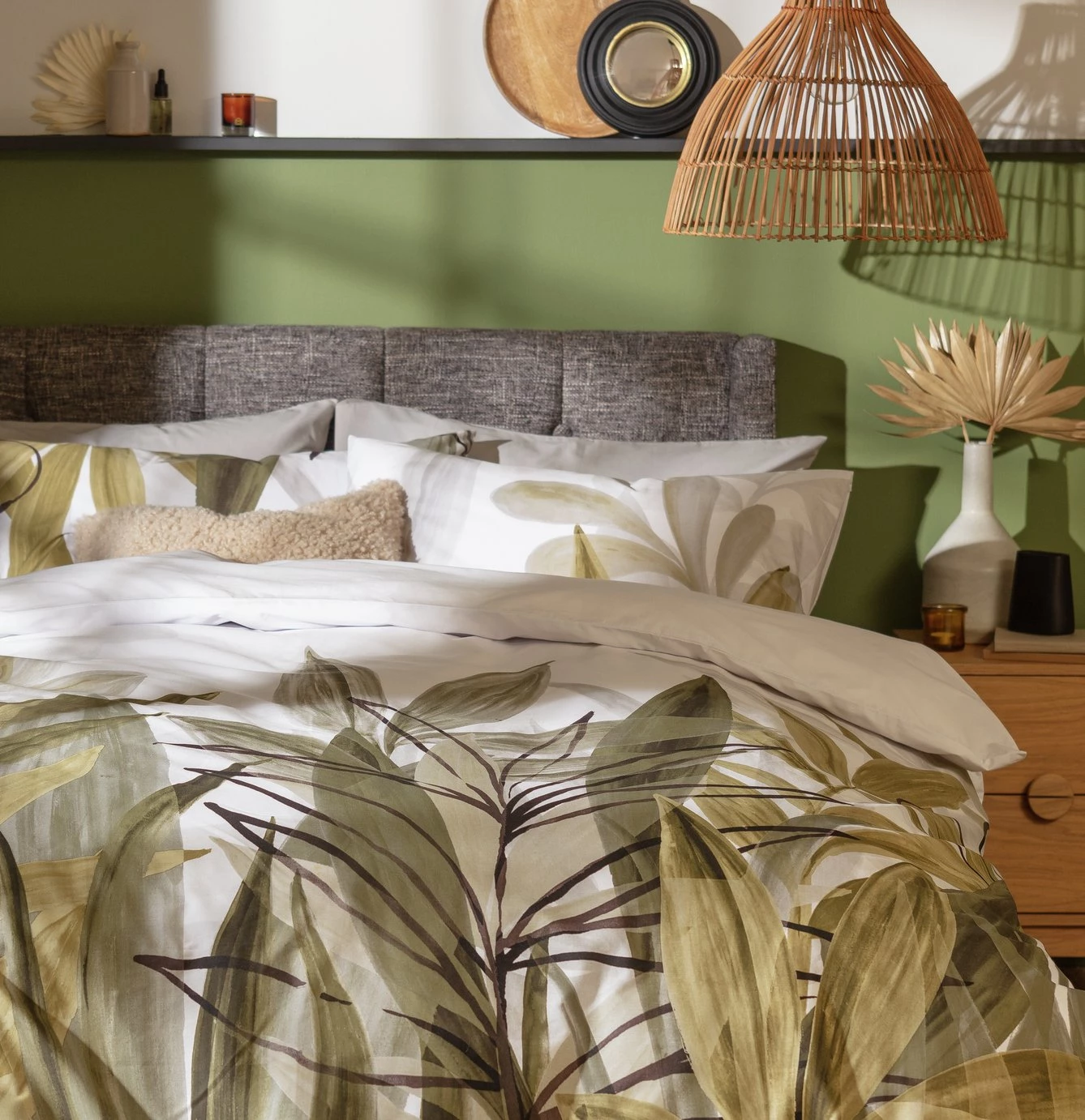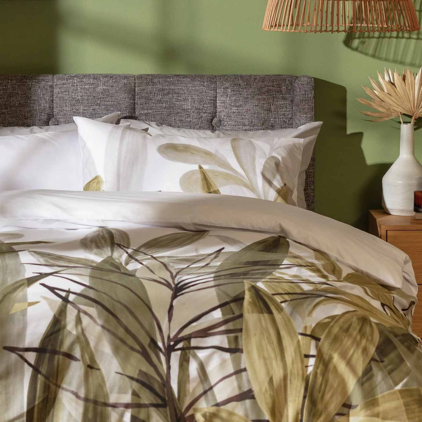 Leafy and lively. Our elegant duvet set features abundant layers of botanical foliage inspired by the beauty of nature. Bold lines meet earthy tones in this stunning design. And when you fancy a change, flip the set over for a crisp and clean boutique look. Pair with linen curtains to create a calm nook for nights in. So dreamy.