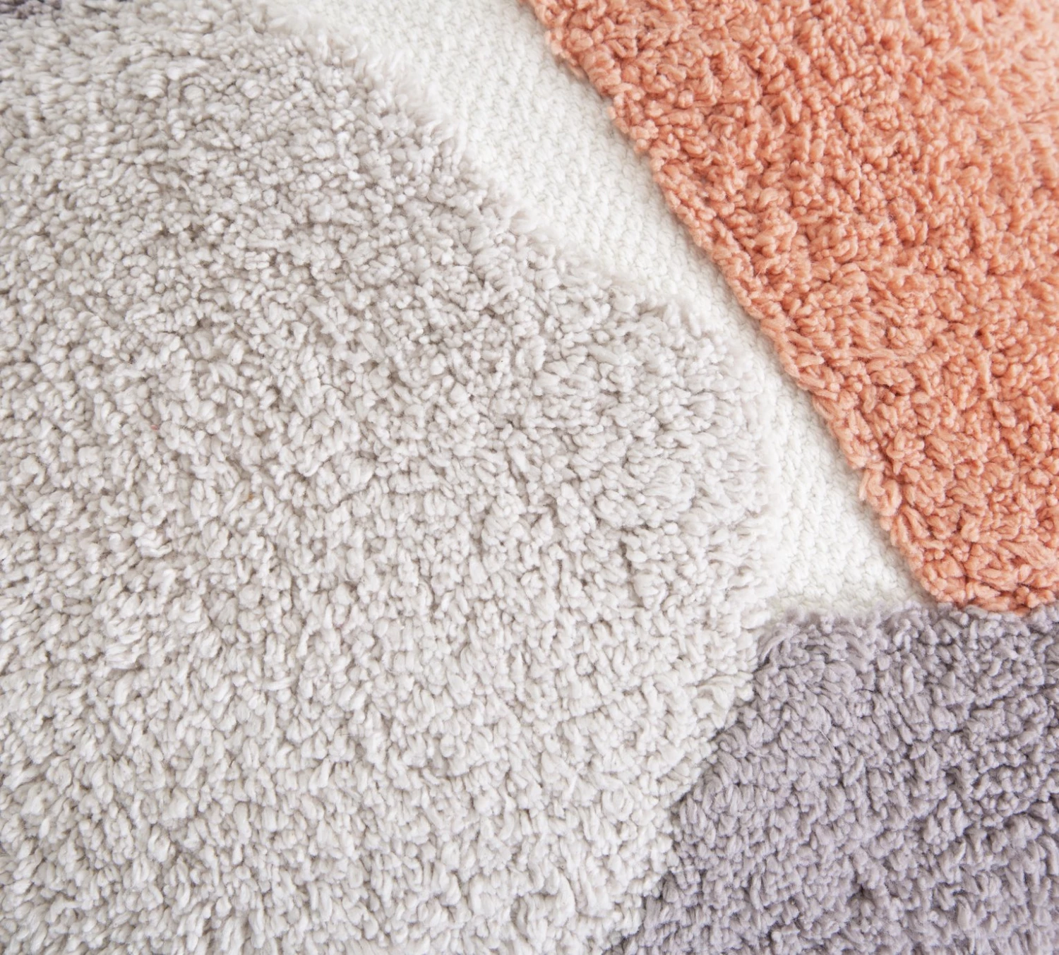 Cuddle up with our deliciously dreamy, tufted cushion. Seriously strokable in 100% cotton, this cute pillow makes a cosy addition to your sofa or bed spread. We love its tactile, curvy shapes in purple, coral pink and soft grey. Watch this pretty design bring an instant pop of colour to a neutral space. Snazzy, snuggly and soft as can be.