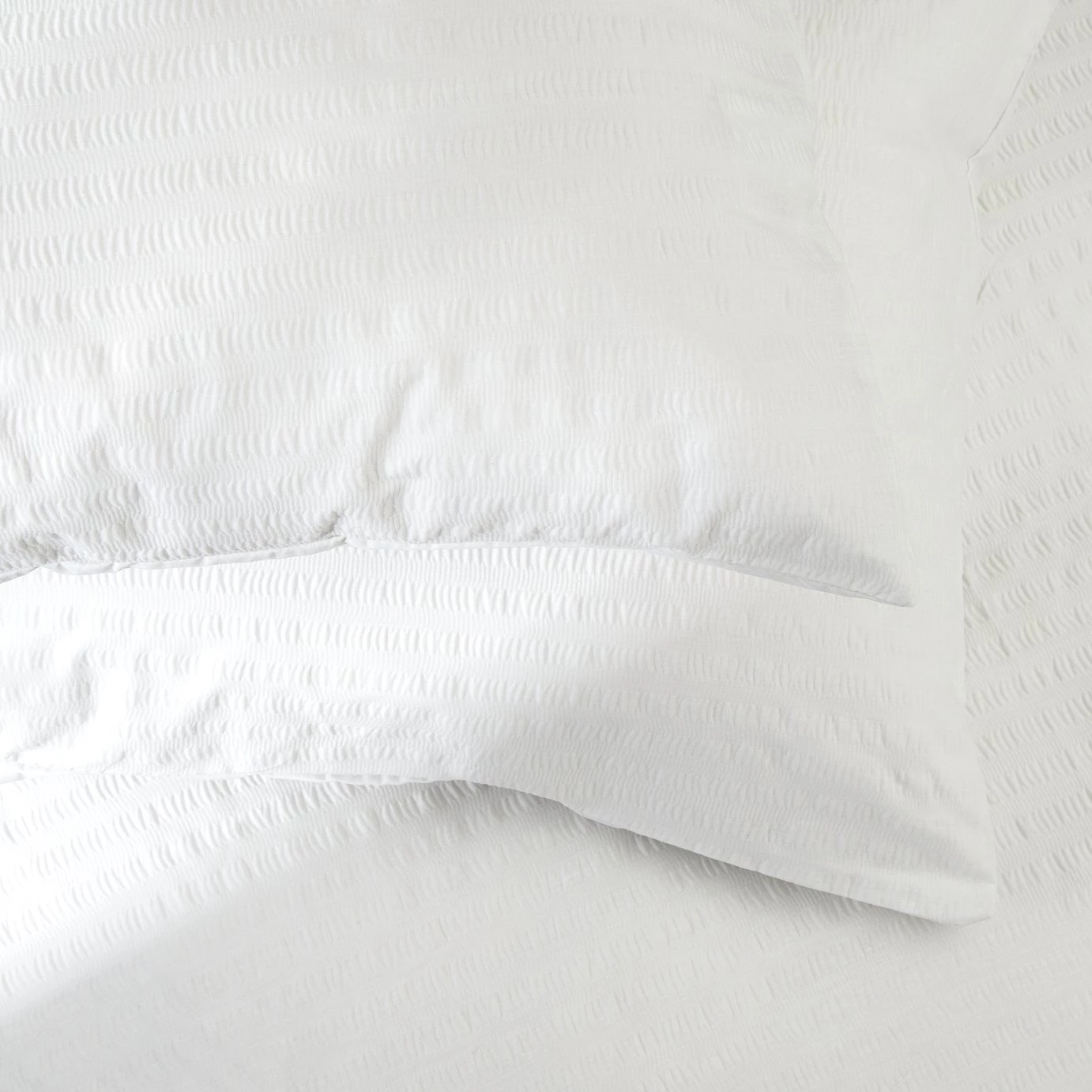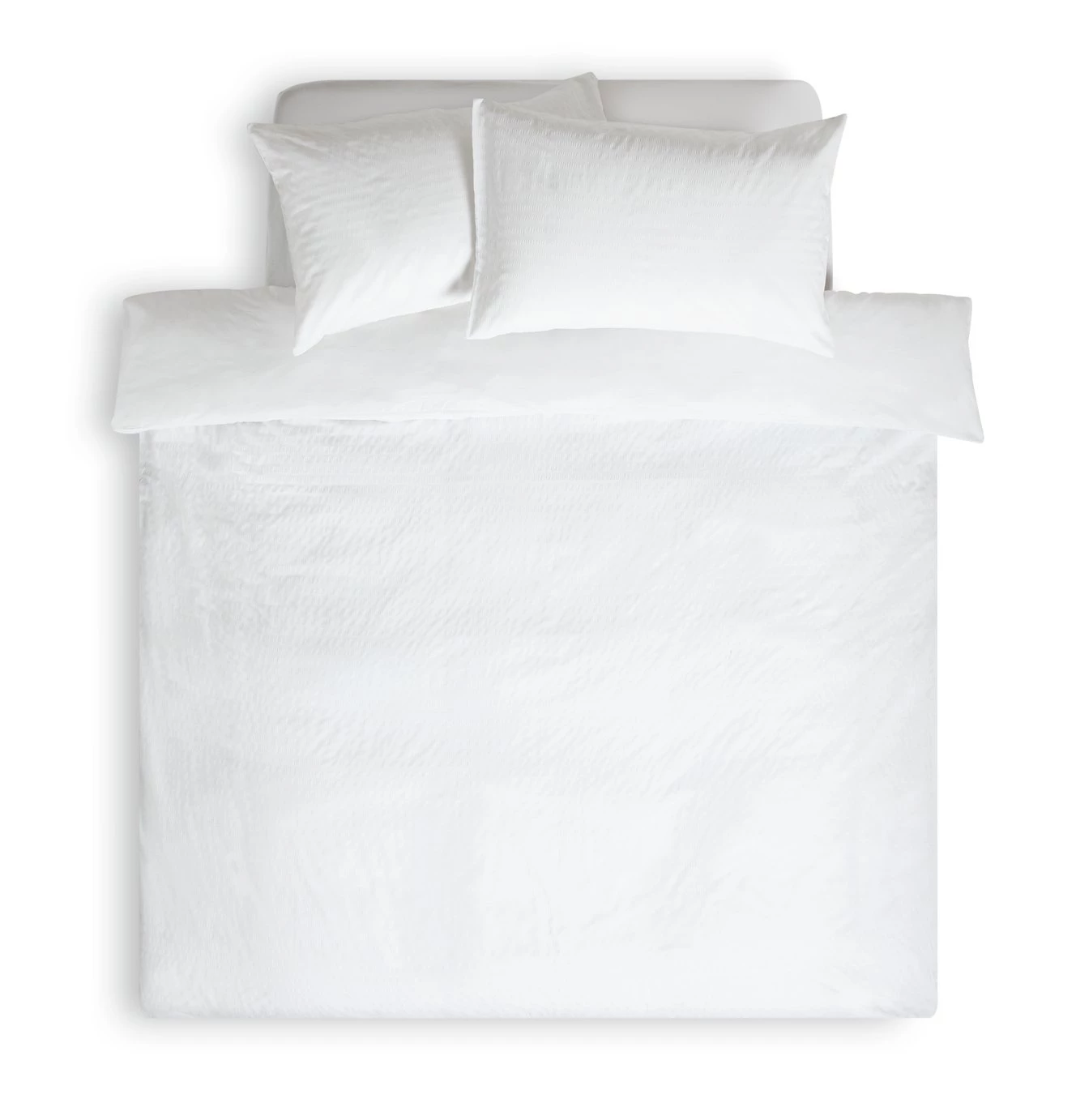 Settle down with our textured single duvet set. Bright white tones and a tactile seersucker weave bring a fresh feel to the bedroom. Soft and lightweight in polycotton, it's a joy to lie in. Pair with neutral walls and lush plants for an all-over organic look. Time to snuggle in style.