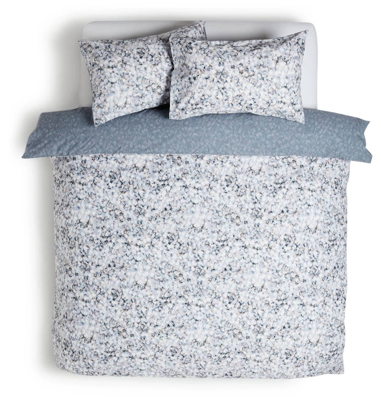 Be soothed to sleep with this combination of soft blues and greys. Like an impressionist painting, our duvet set is a fabulous way to give your bedroom a cool and contemporary upgrade. The multicoloured canvas welcomes a little brightness into your bedroom too. And when you fancy a change, simply flip the duvet over for a reverse pattern. Blended from polyester and cotton, with buttons for fastening, it's easy to care for and easy to change. So cool.