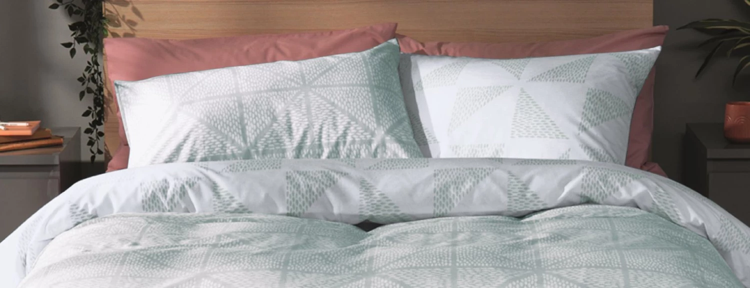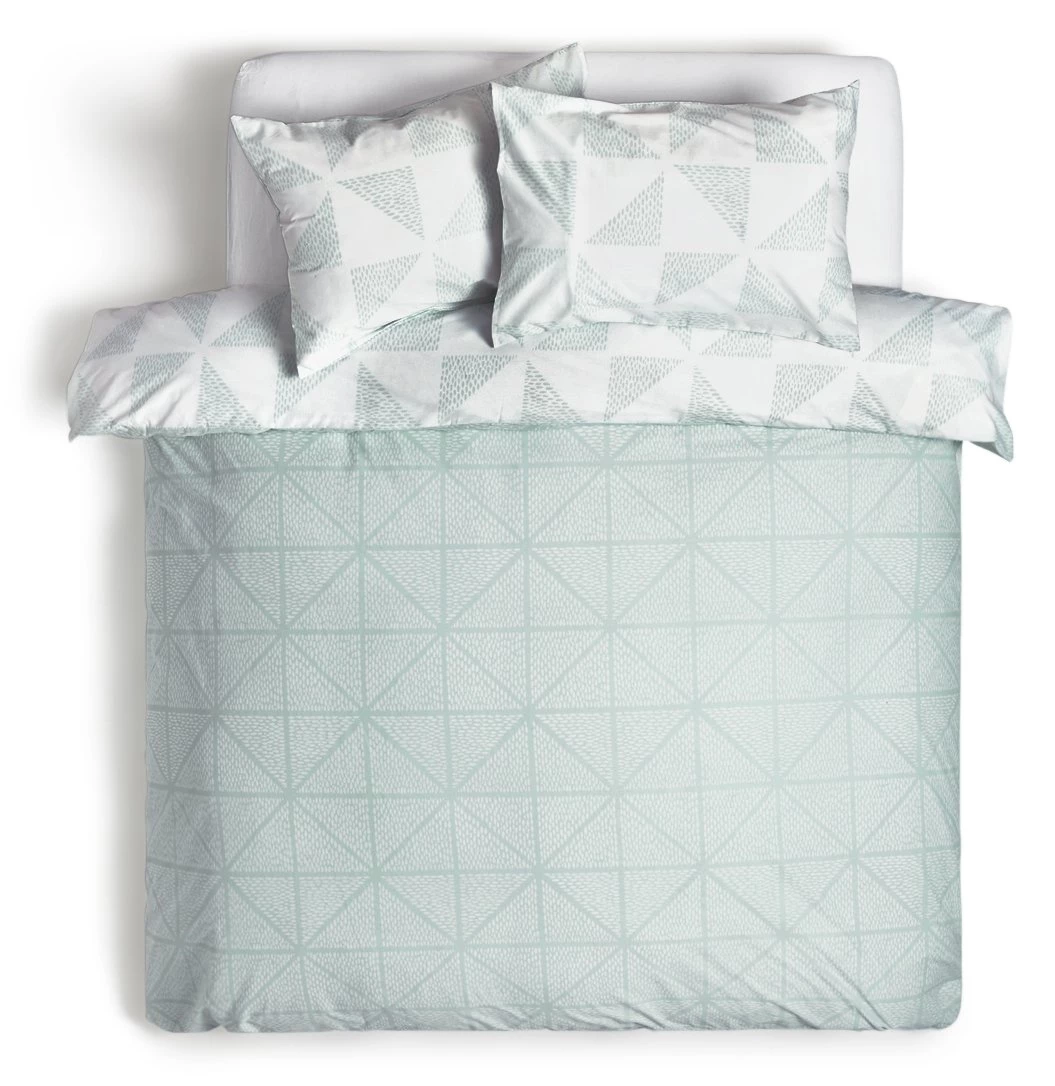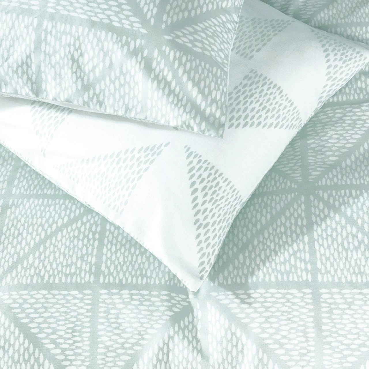 Love a bit of Scandi style? Bring it home with this smart, contemporary single bed set in Duck Egg. Featuring a simple, geometric pattern, it's as modern as they come. With a reversible pattern it's versatile too. Just flip it when you fancy a quick refresh. Made in polycotton and fastened with buttons.