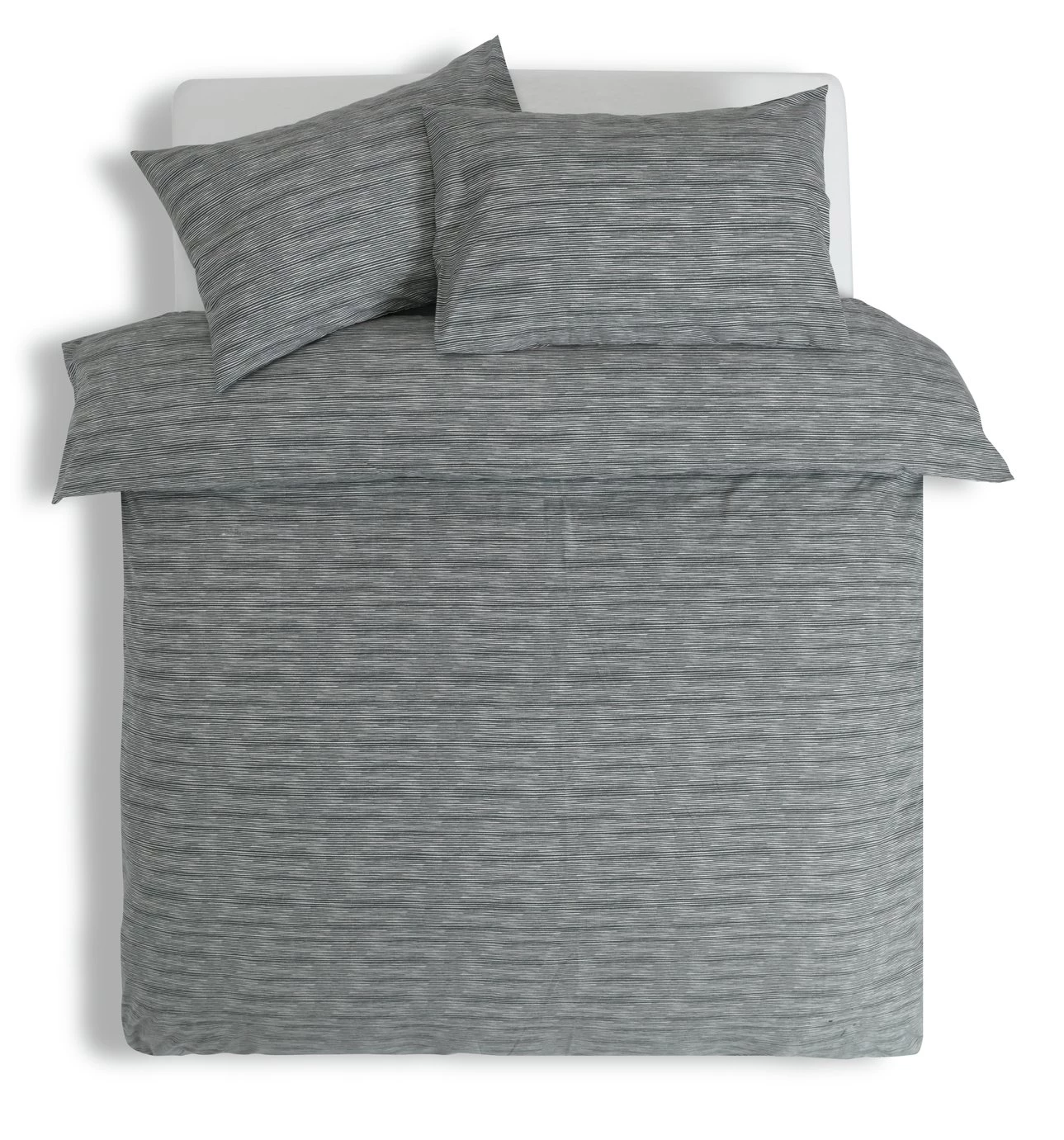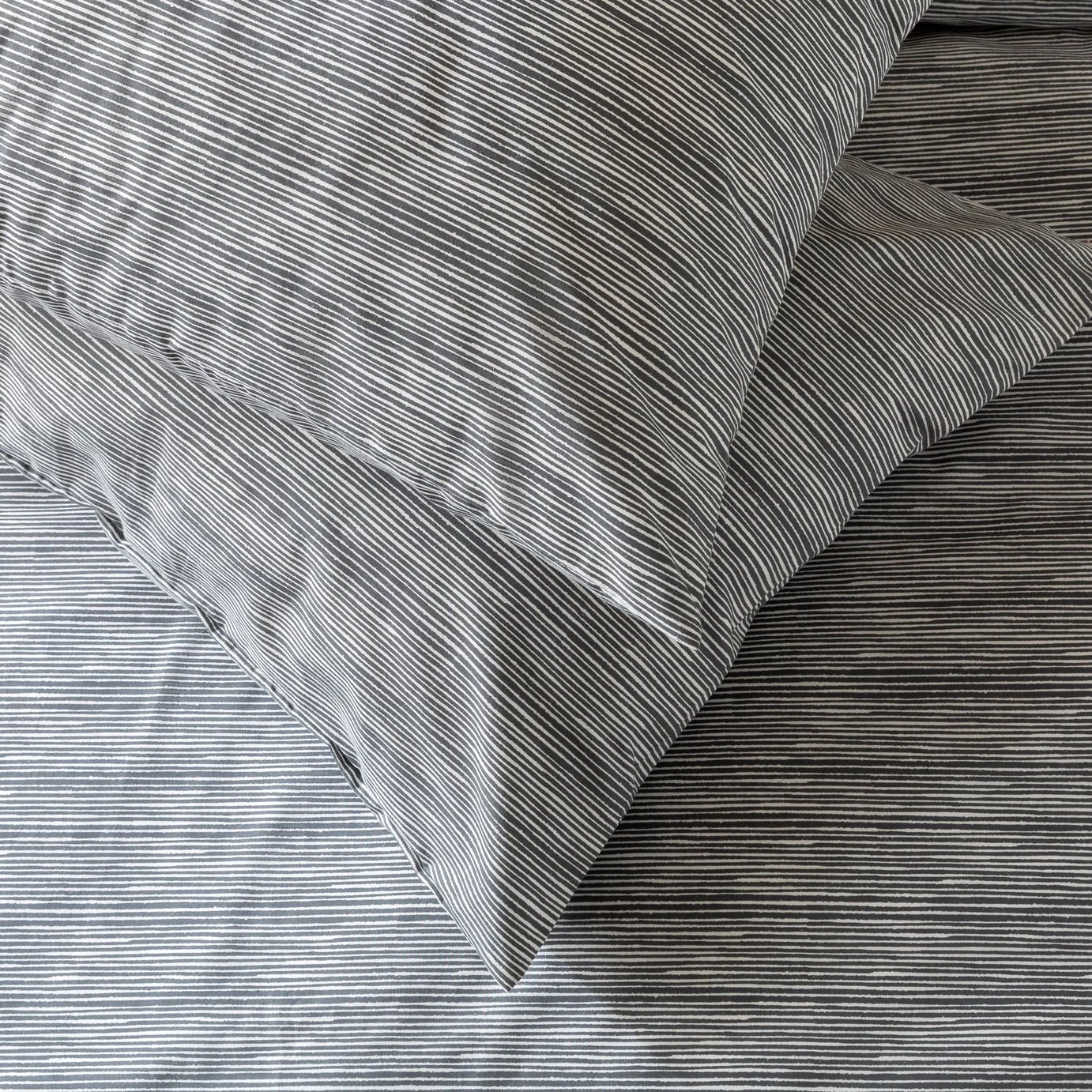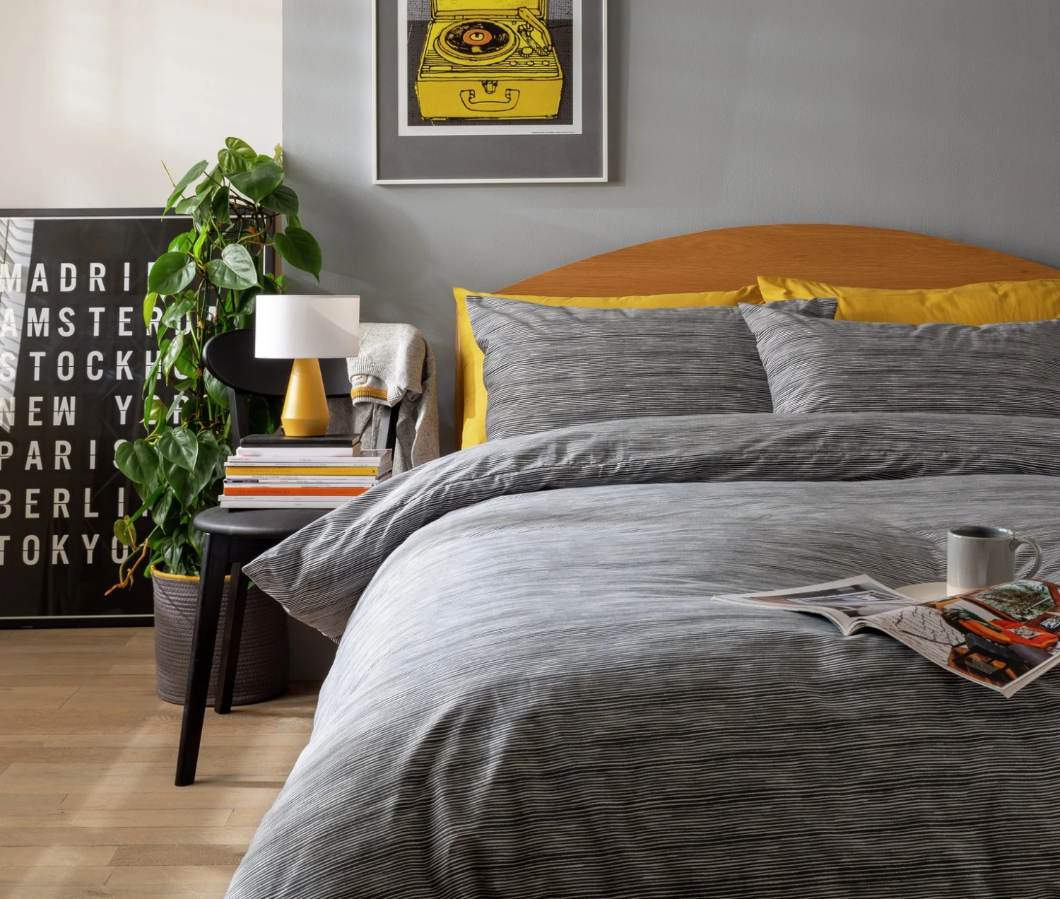 Classic and cool. This Stockholm bedding set brings a serene Scandi calm to your bedroom. The subtle grey stripes are a great choice for a modern or contemporary decor. Add colourful plain sheets in bold yellow to create a bed setting that is seriously on trend. Easy care and easy fastening, the fabric is 100% cotton and the duvet has a button closing. Snuggle up and travel to dreamland.