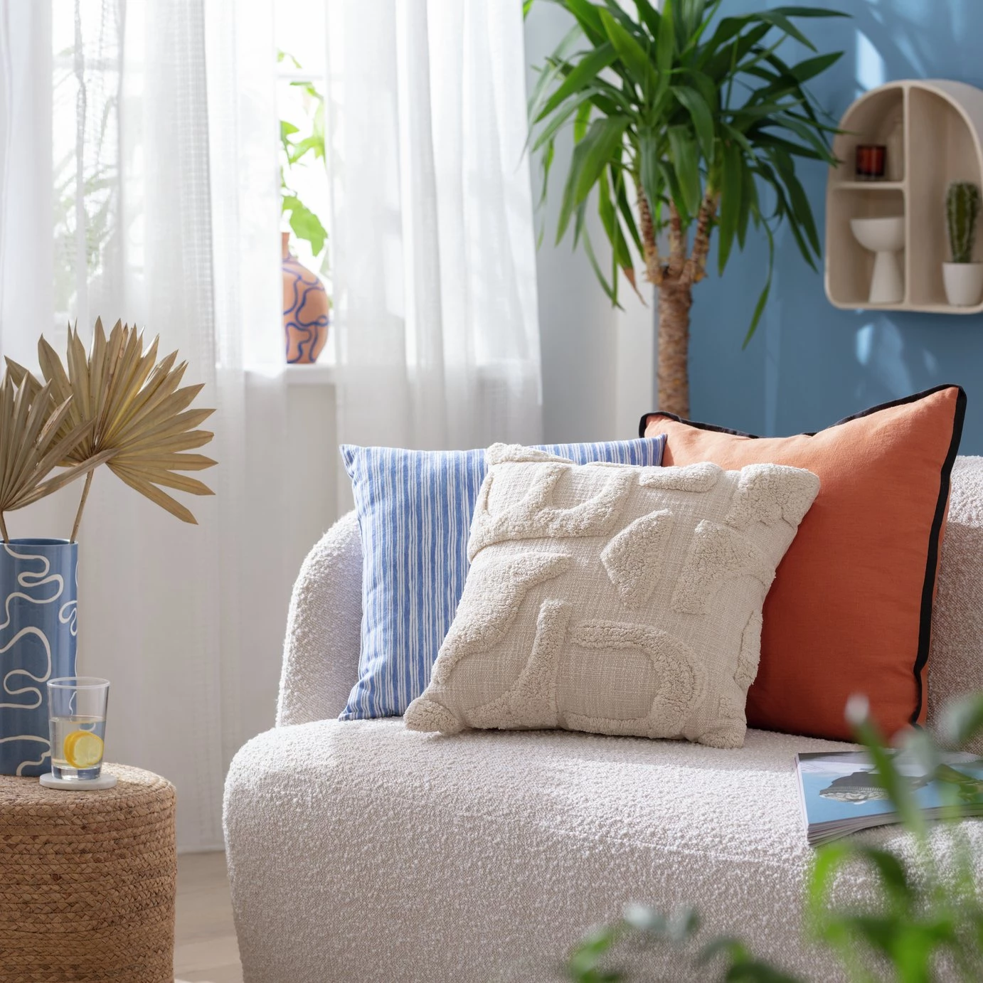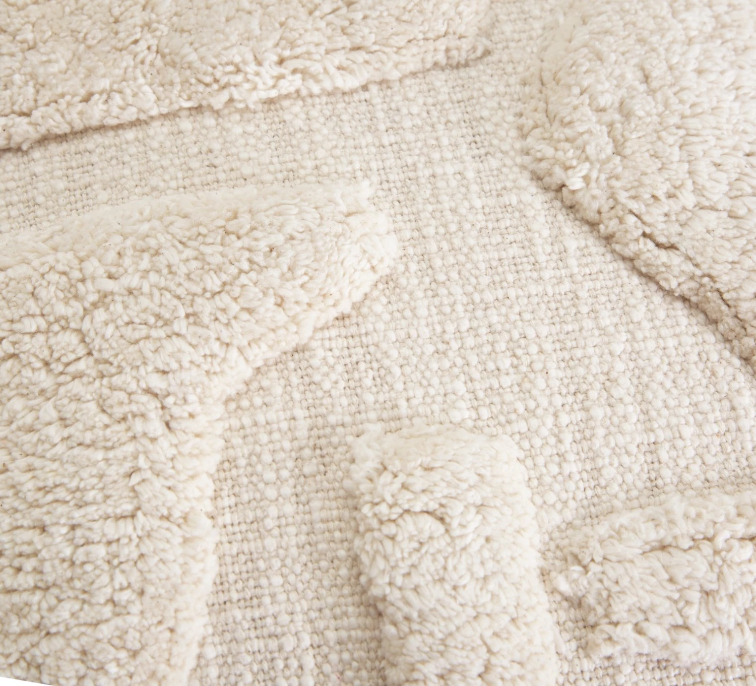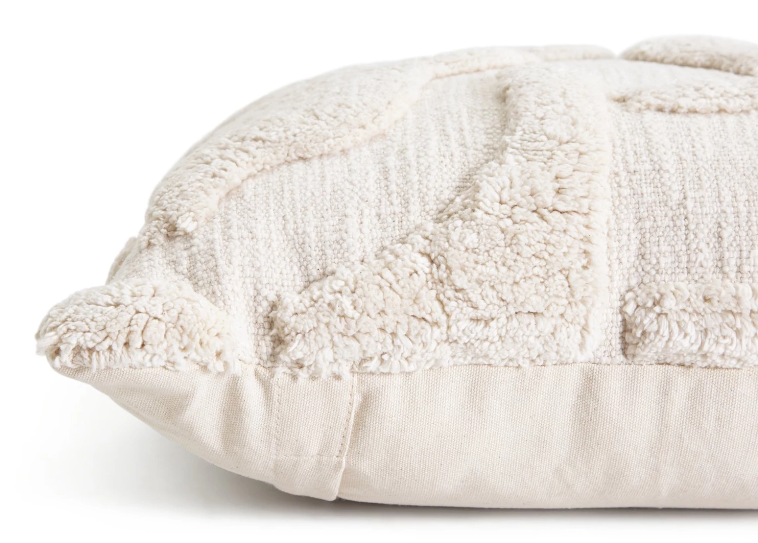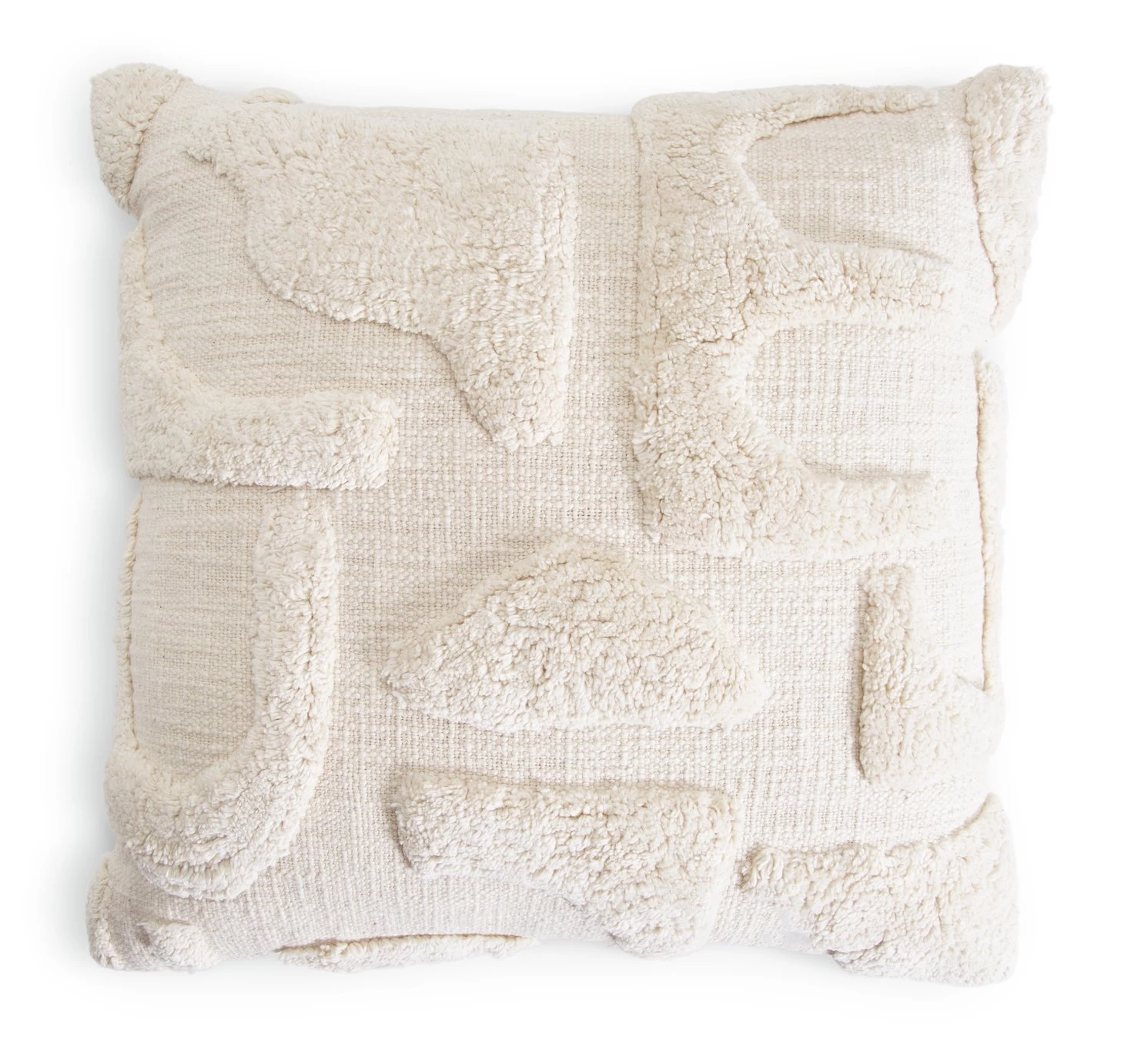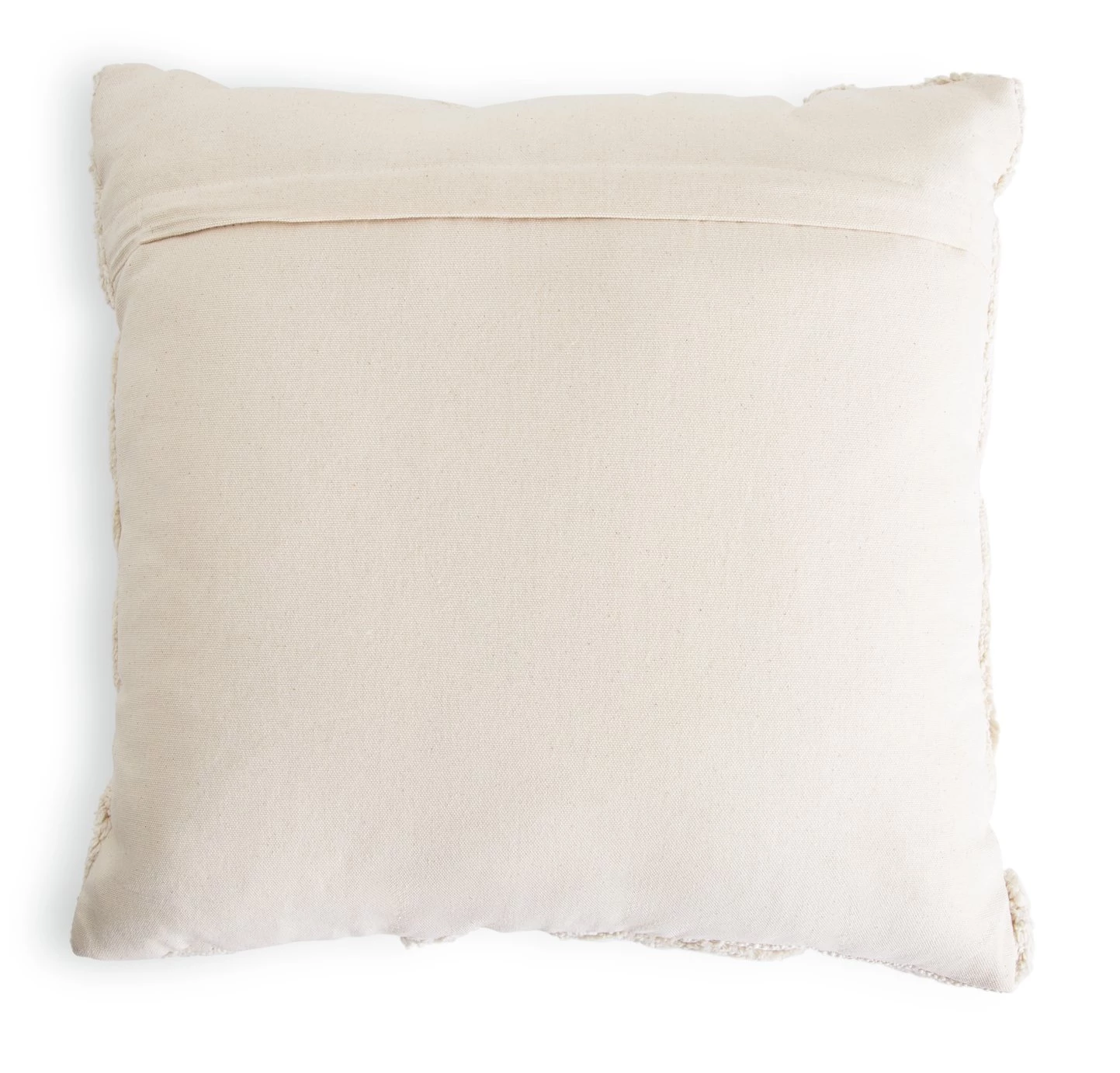 A warm fuzzy feeling. Handmade in 100% natural cotton, this tufted cushion is irresistibly soft. And the raised abstract shapes are satisfyingly tactile. The neutral palette and subtle design add dimension to your space. A little bit modern, a little bit Mediterranean. A whole lot of on trend style.