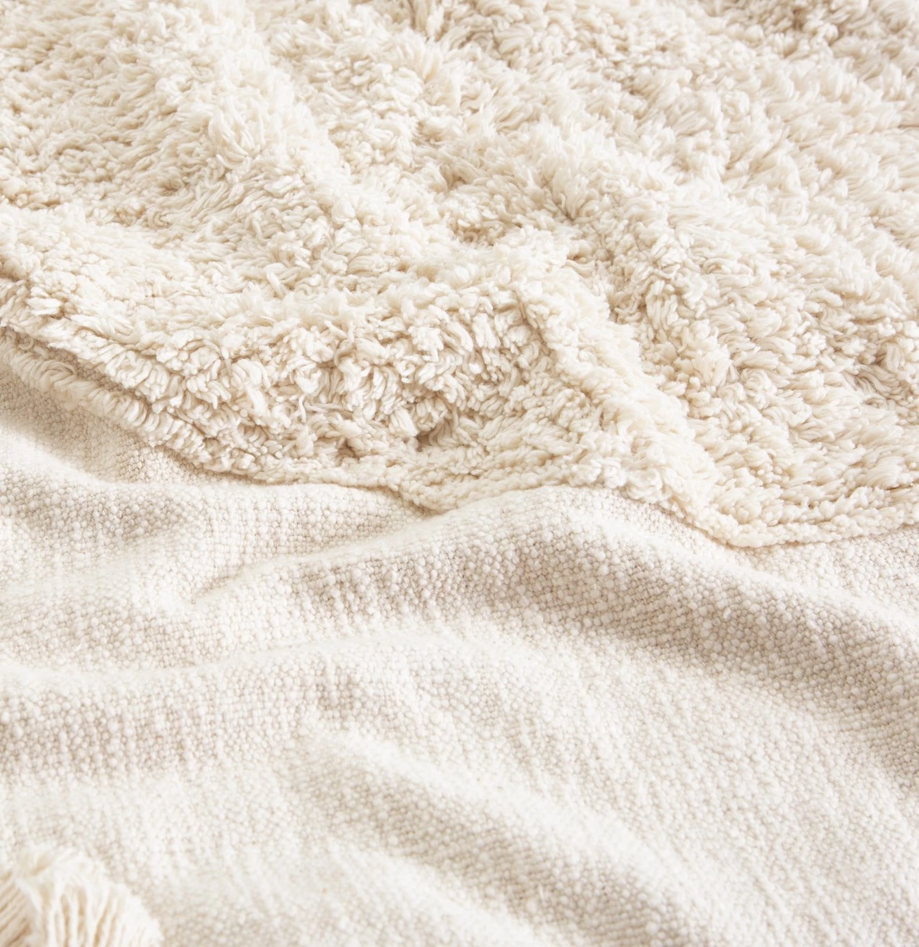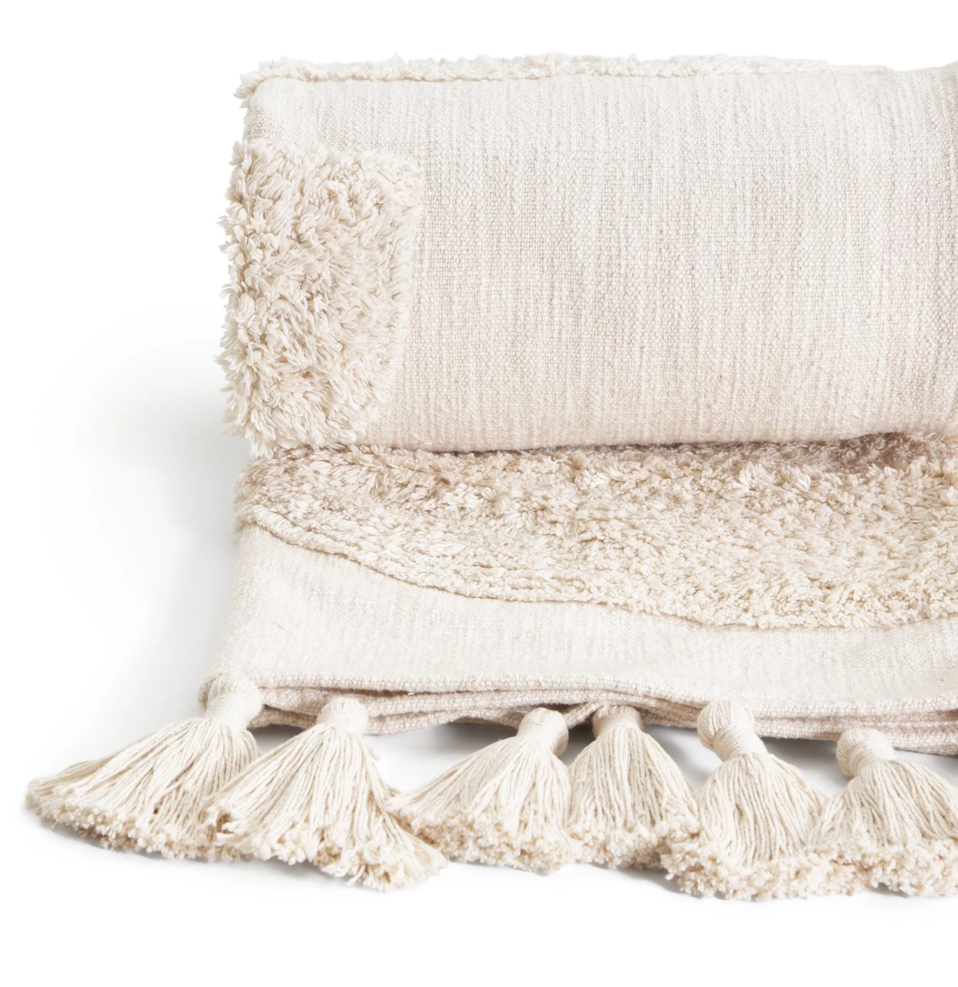 Throw down some tufted, textured forms. Crafted from thick luxurious cotton, this super soft throw is inspired by the laidback Mediterranean lifestyle. Tactile details on a calming, neutral palette. How zen. Drape it over your sofa for a look that's wonderfully bohemian. All that's missing is the beach.