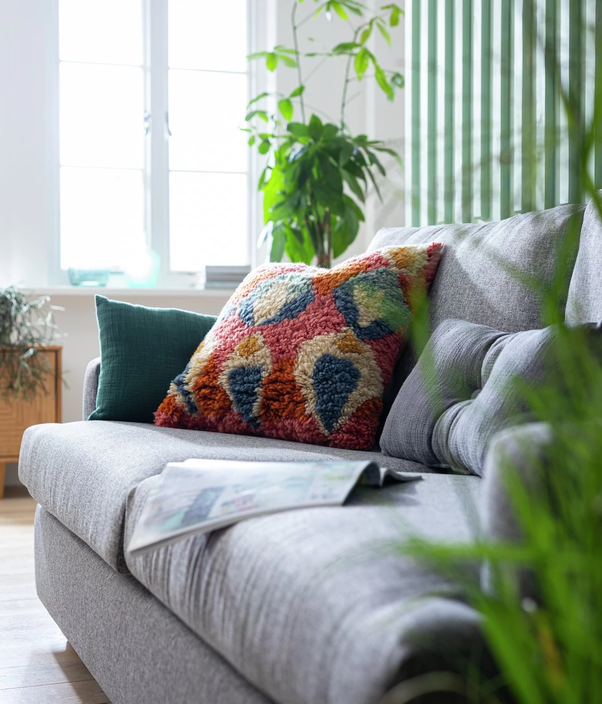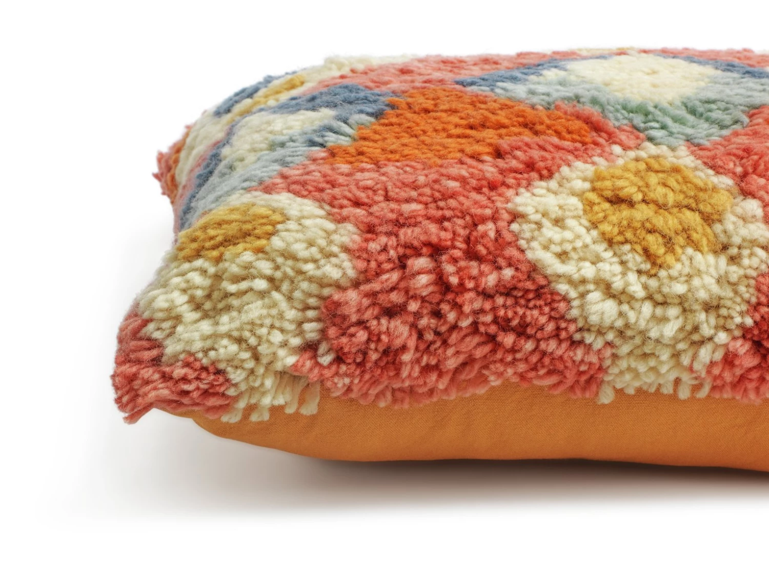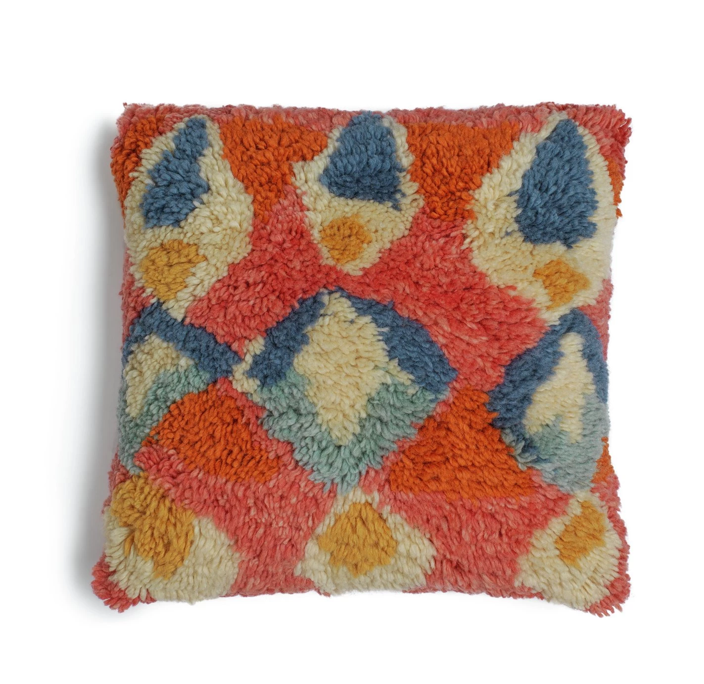 It's always sunny with Savannah. Inspired by traditional Turkish kilim design, bursts of yellow, orange and blue give this cushion a distinctly boho feel. And made from a blend of shaggy woven wool and soft cotton, it's marvellously cuddly too. Cosy and cool in equal measure.