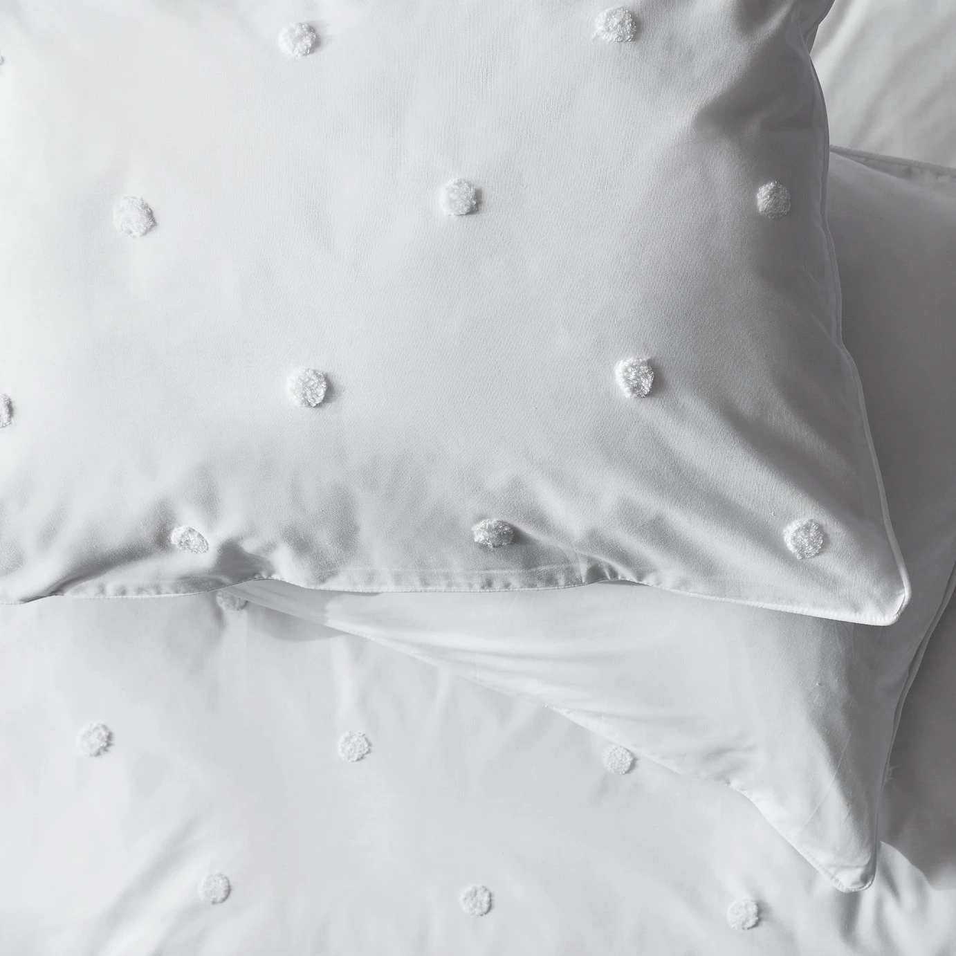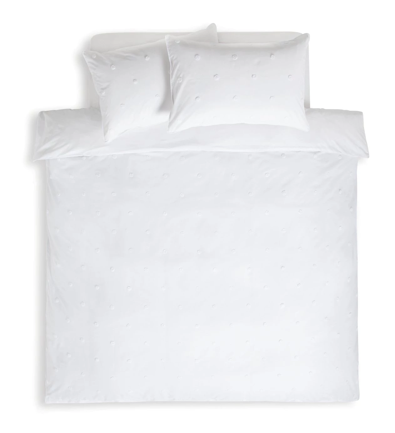 Deliciously dotty. Our tufted duvet set is cool, calm and oh so chic. We love how the fresh white brightens up the room and the piping detail adds the designer touch. Snuggle down and run your fingers over the fluffy dots. Crafted with a smooth percale polycotton blend and a thread count of 180, you'll sleep like a baby.
