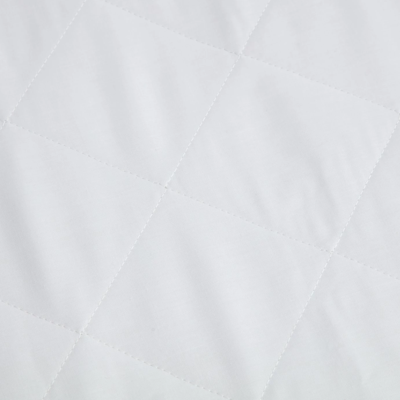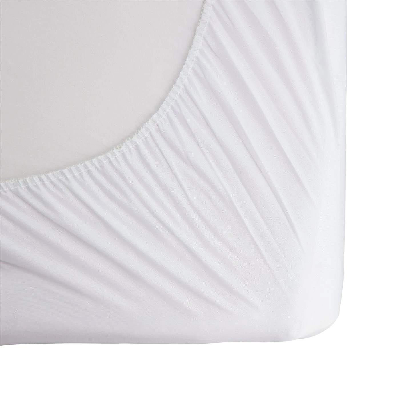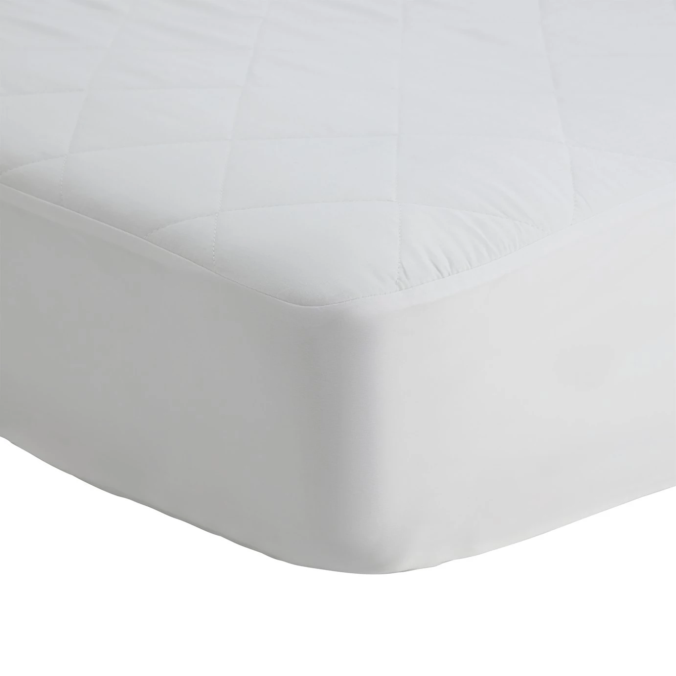 Slumber peacefully in dreamland. Our waterproof mattress protector gives you sleep time with a little extra peace of mind. Ideal if you have pets, kids or love breakfast-in-bed. This white polyester cover protects your mattress from getting damp or marked. Elasticated corners keep it in place and make for quick changes too. Easy. Top with a sheet and snuggle in. Night night.