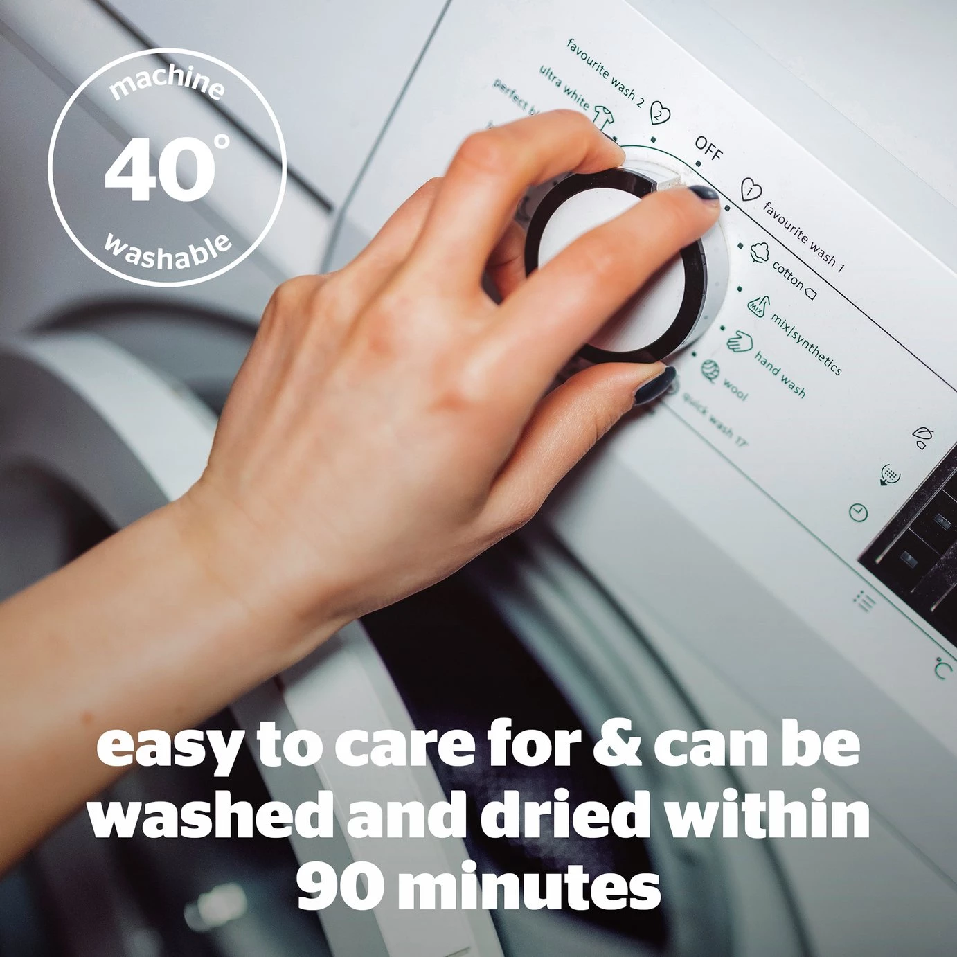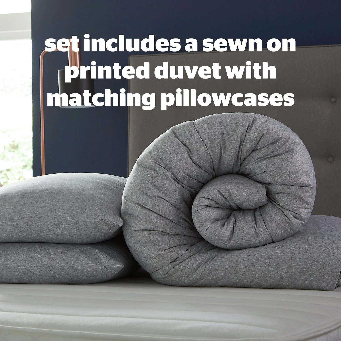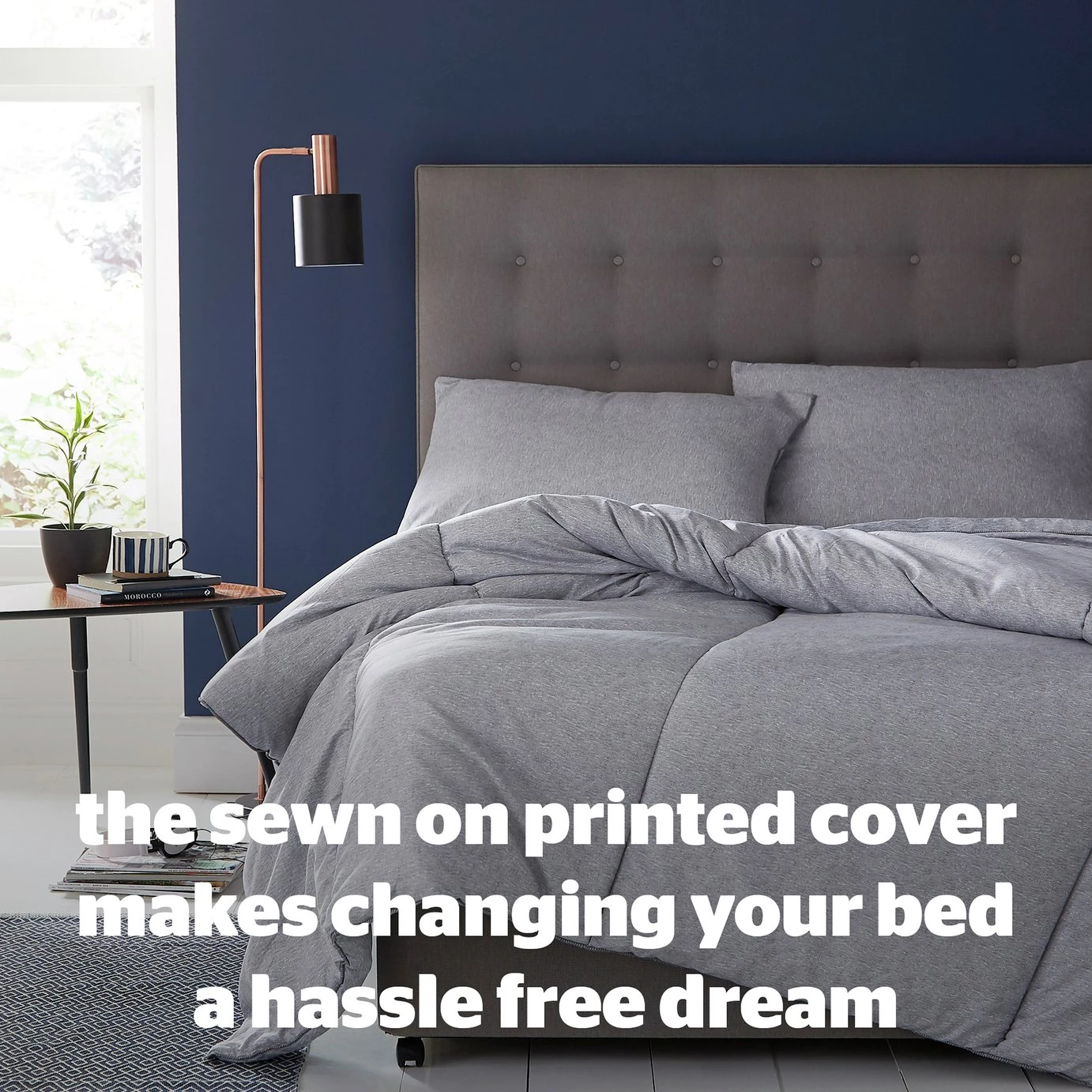 Designed with convenience in mind, the Silentnight Coverless Duvet Set makes dressing your bed a total dream as the duvet doesn't require an additional duvet cover. The set includes a duvet complete with printed sewn on covers in a stylish grey marl design and matching pillowcases. Made from soft-touch fabric for cosy comfort. The pillow and duvet are filled with fluffy hollowfibre providing cosy comfort. The set is machine washable and can even be washed and dried within 90 minutes.