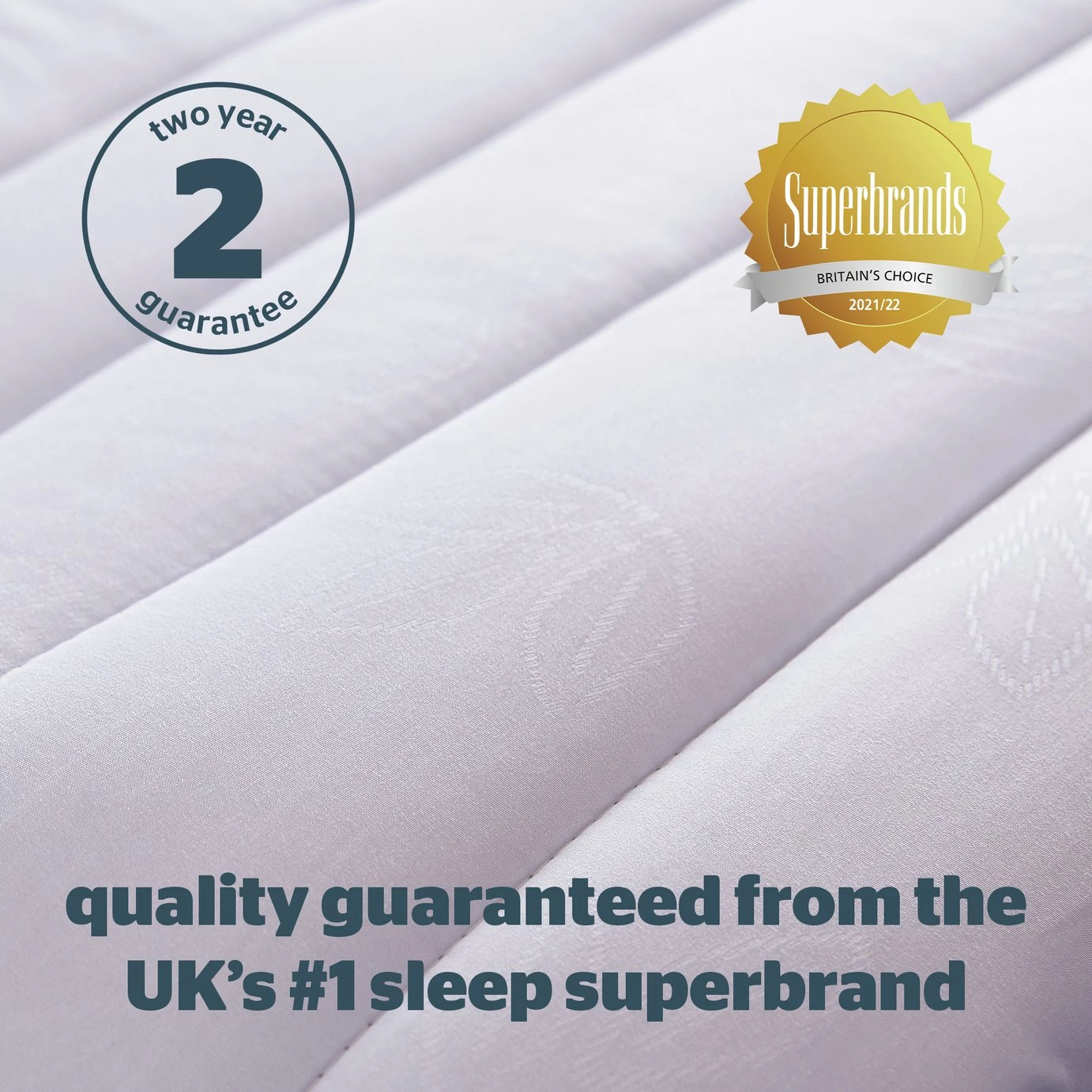 The eco-friendly Eco Comfort Mattress Topper is filled with bouncy fibres which are made from 100% recyclable plastic bottles to bring you superb comfort that won't cost the planet or your pocket. For every Eco Comfort Mattress Topper we have made, we have prevented around 30 plastic bottles going into landfill or the ocean. The Eco Comfort Mattress Topper provides ultimate comfort and prolongs the life of your mattress. It is hypoallergenic and machine washable.