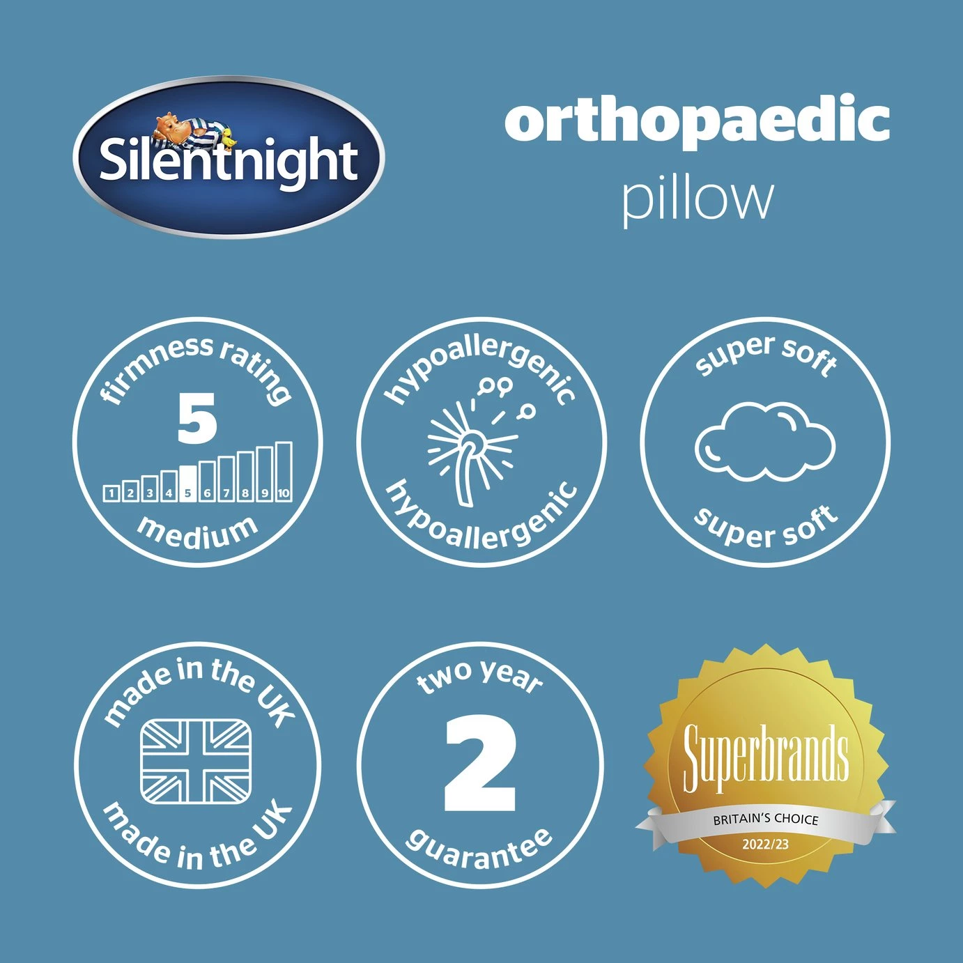 The Silentnight Orthopaedic Pillow offers optimum support for the head and neck to improve spinal alignment and ease muscular aches and pains. A supportive foam centre lies within the heart of the pillow to offer great support and comfort as you sleep. This pillow is hypoallergenic, made in the UK and comes with a 2 year peace of mind guarantee.