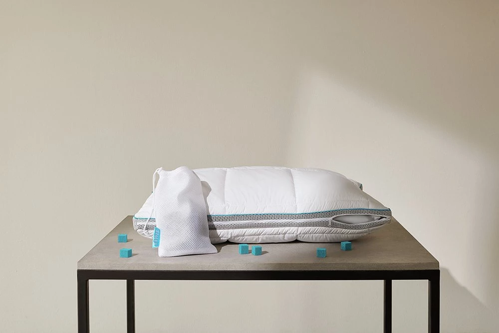Adjust the height and firmness of your pillow by adding or removing foam Nanocubes. Our space-inspired fabric technology regulates your temperature and the soft fibre padding dissipates heat. A mesh border allows maximum airflow through the pillow – making sleep a breeze.