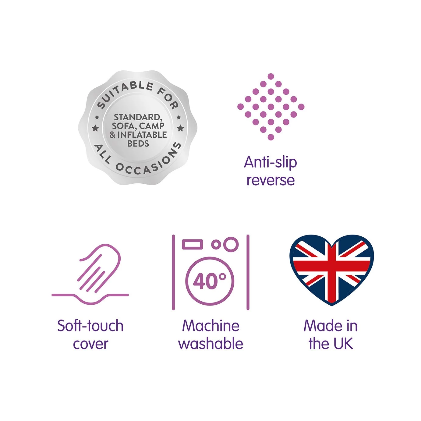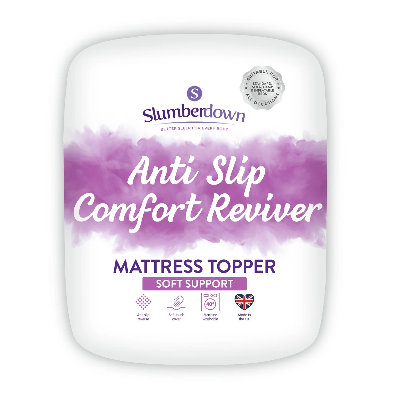 At Slumberdown we believe every body deserves a better night's sleep. The Anti Slip Comfort Topper will revive your mattress giving an extra layer of comfort thanks to the Slumberdown Airstream technology. The topper holds its shape and has all the benefits of memory foam but without the heat build up. The anti-slip back makes it easy to fit and ensures the topper stays in place. The topper can be used for camping, spare beds, weekend sleepovers etc.