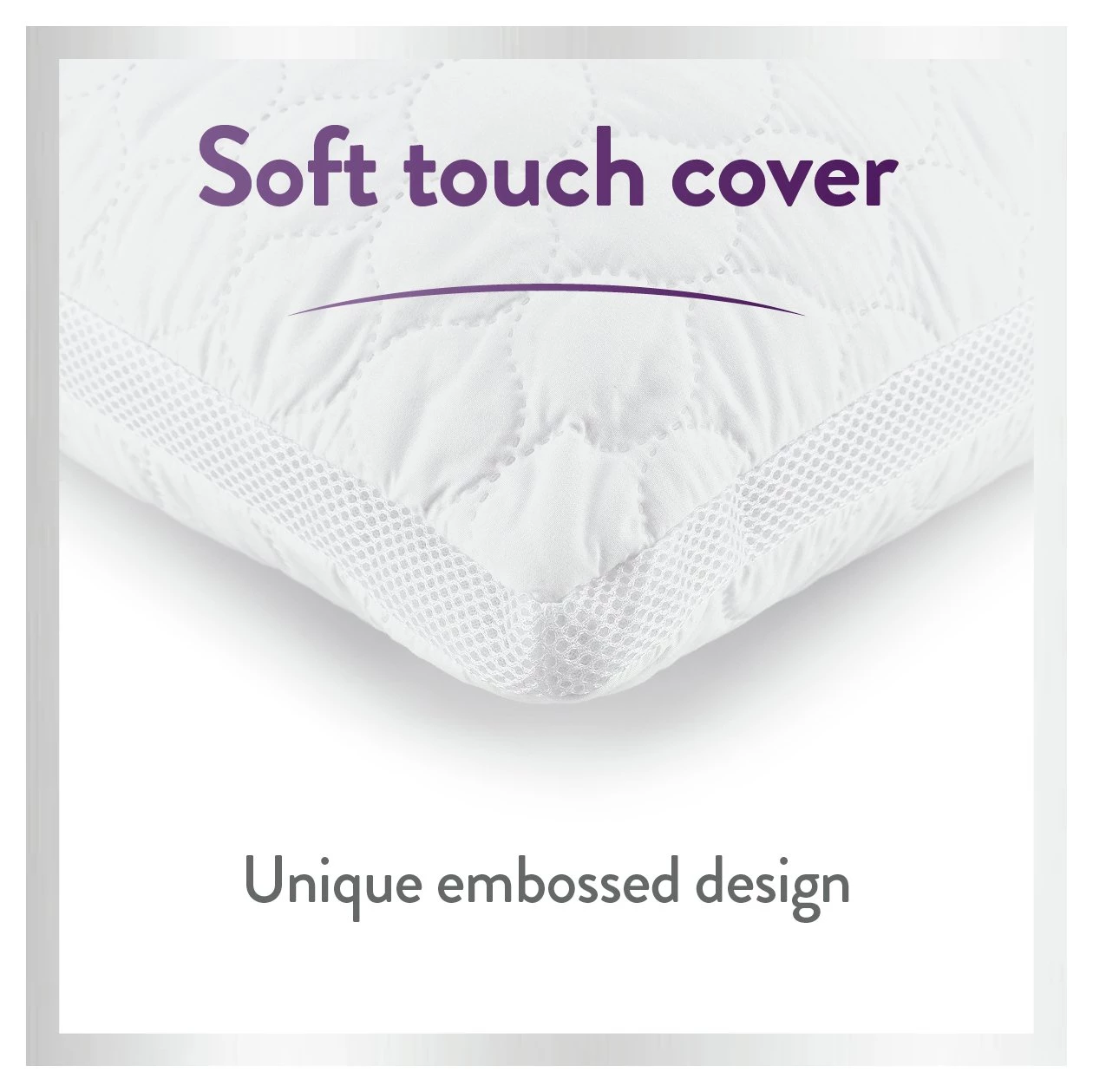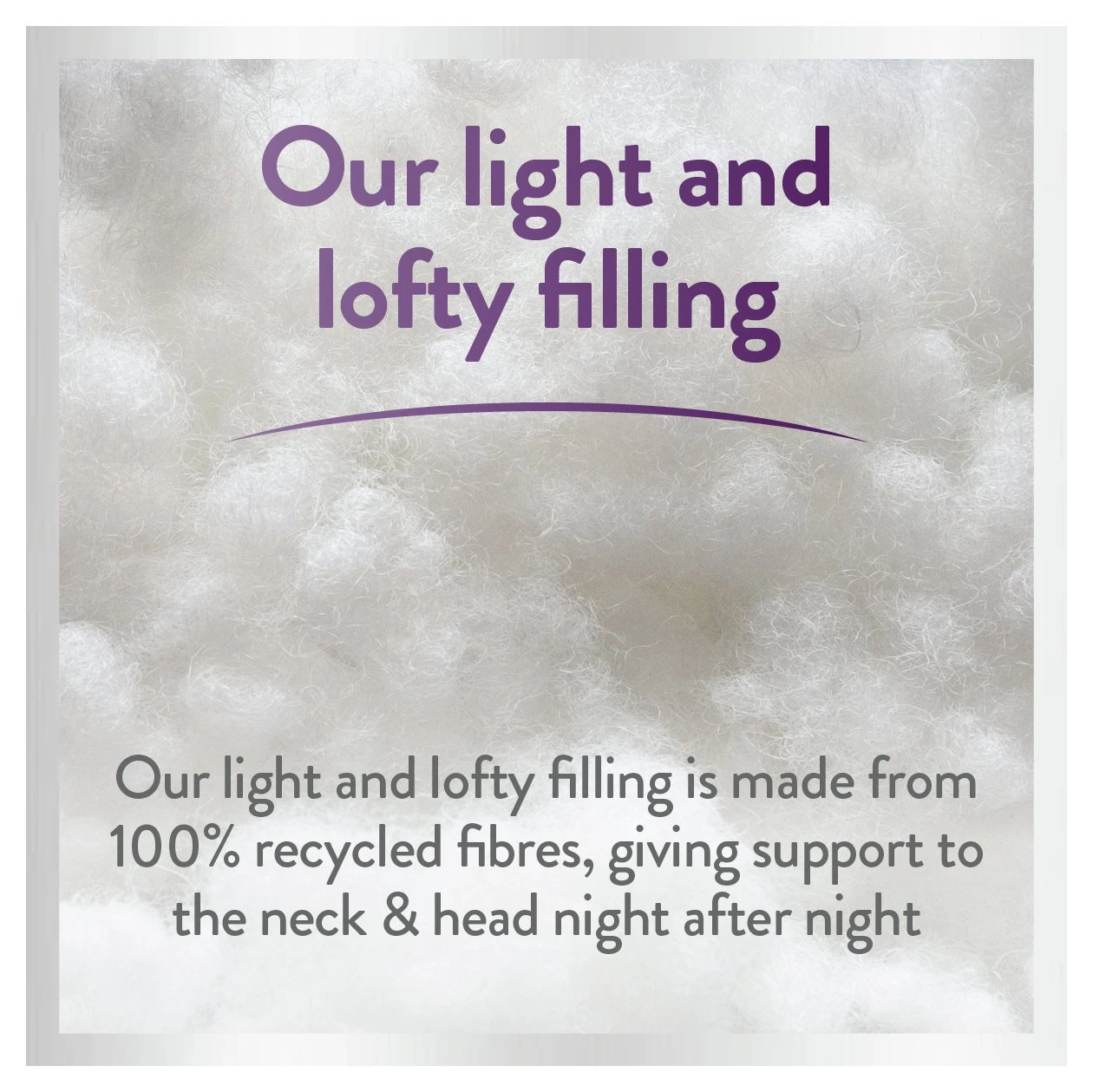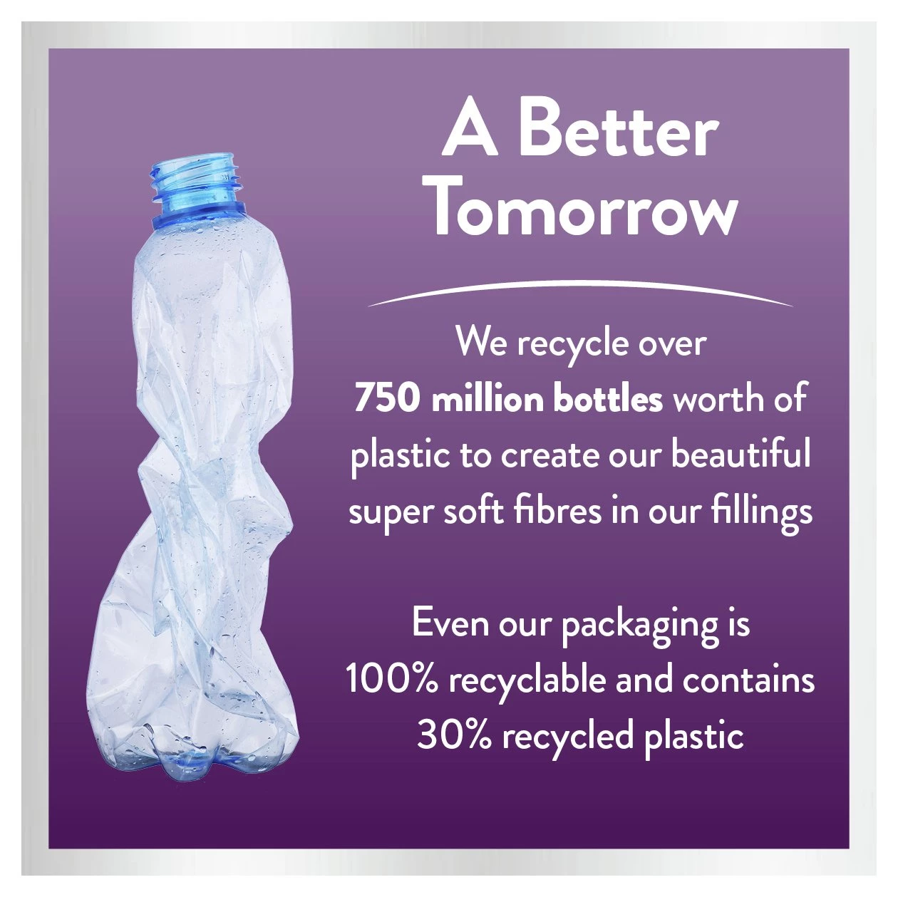 Supersoft Breathable Quilted Pinsonic Cover. Unique S-Shaped support block to provide maximum support. Non-Allergenic. Our fibre and packaging uses recycled plastics saving in excess of 10M bottles being landfilled each year.