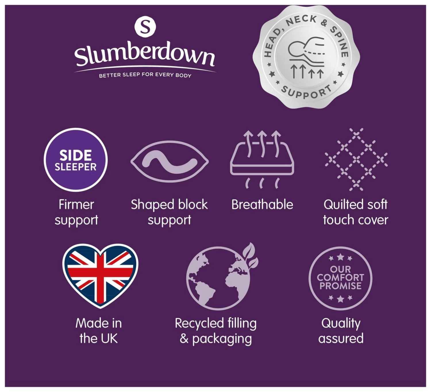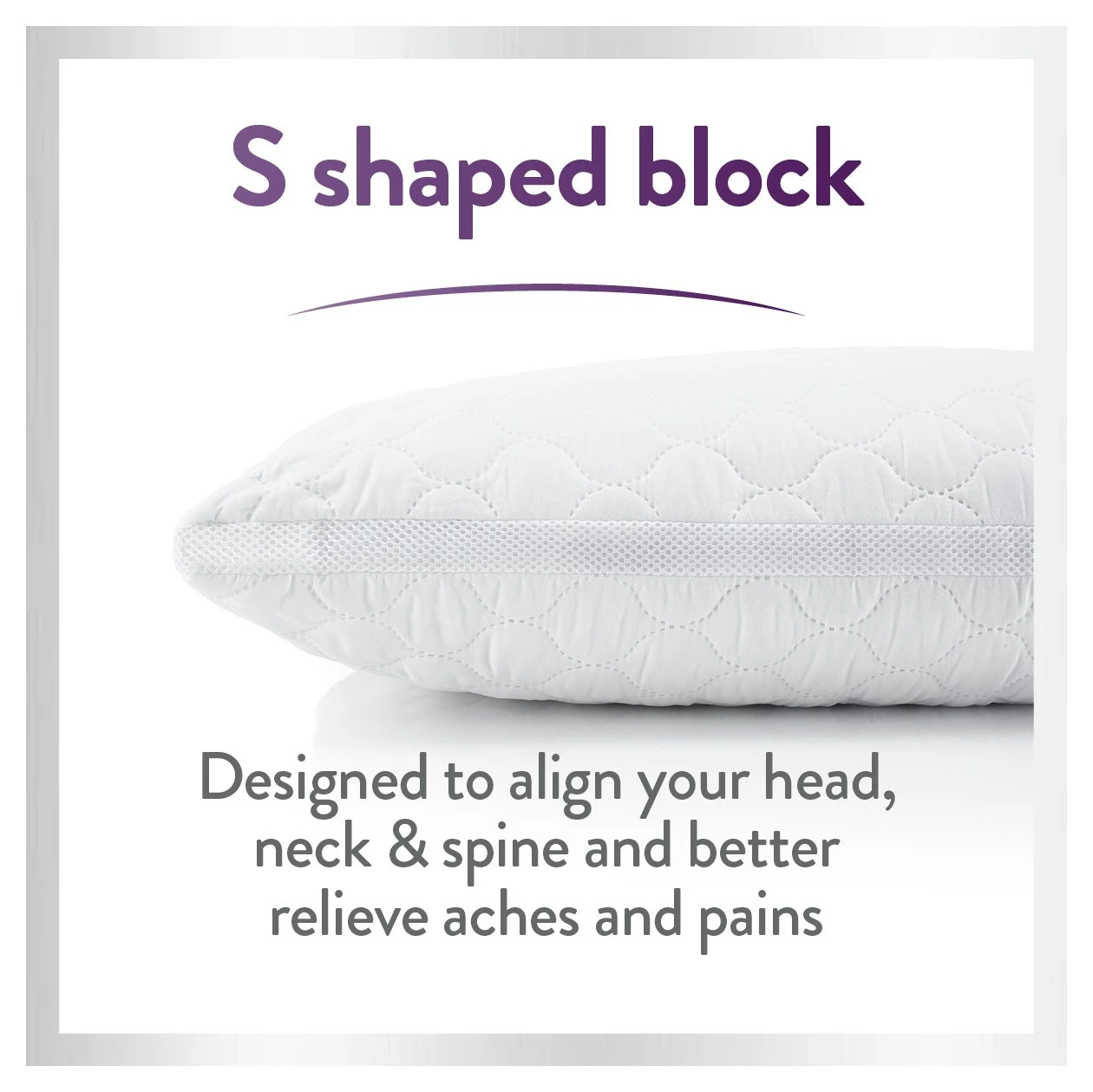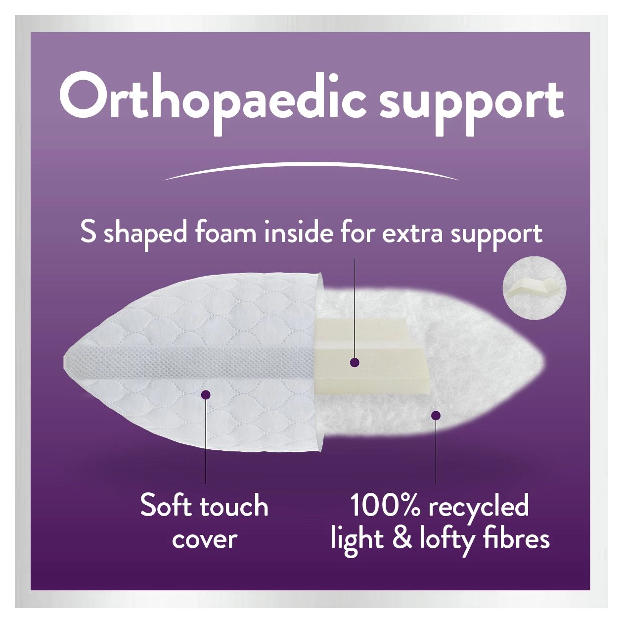 The Slumberdown Orthopedic Support Pillow with S-Shaped Core, has a super soft breathable quilted cover, which has been designed to create optimum breathability and reduce any heat build-up. The unique S-CORE support block is wrapped in our super soft fibre, this combination ensures your head, neck and spine is aligned, providing optimum support, minimising those daily aches and pains. This pillow offers firm support ideal if you sleep on your side.