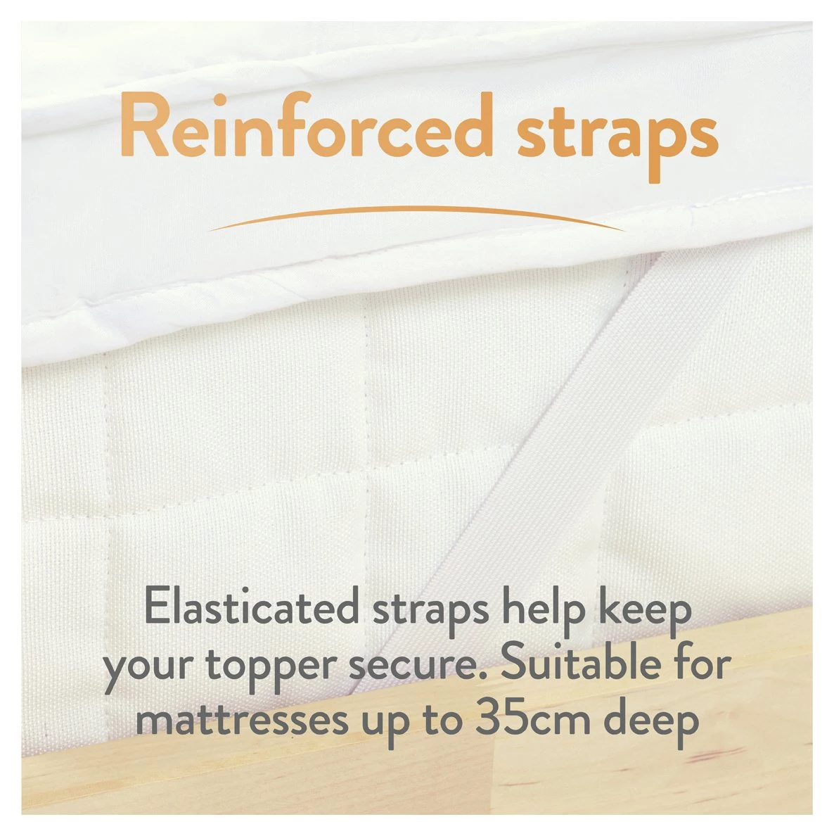 Supersoft cover High fill weight – providing soft to medium support Re-inforced elasticated straps Suitable for a mattres depth of up to 35cm Extends the life of your mattress by protecting it from stains and spills.