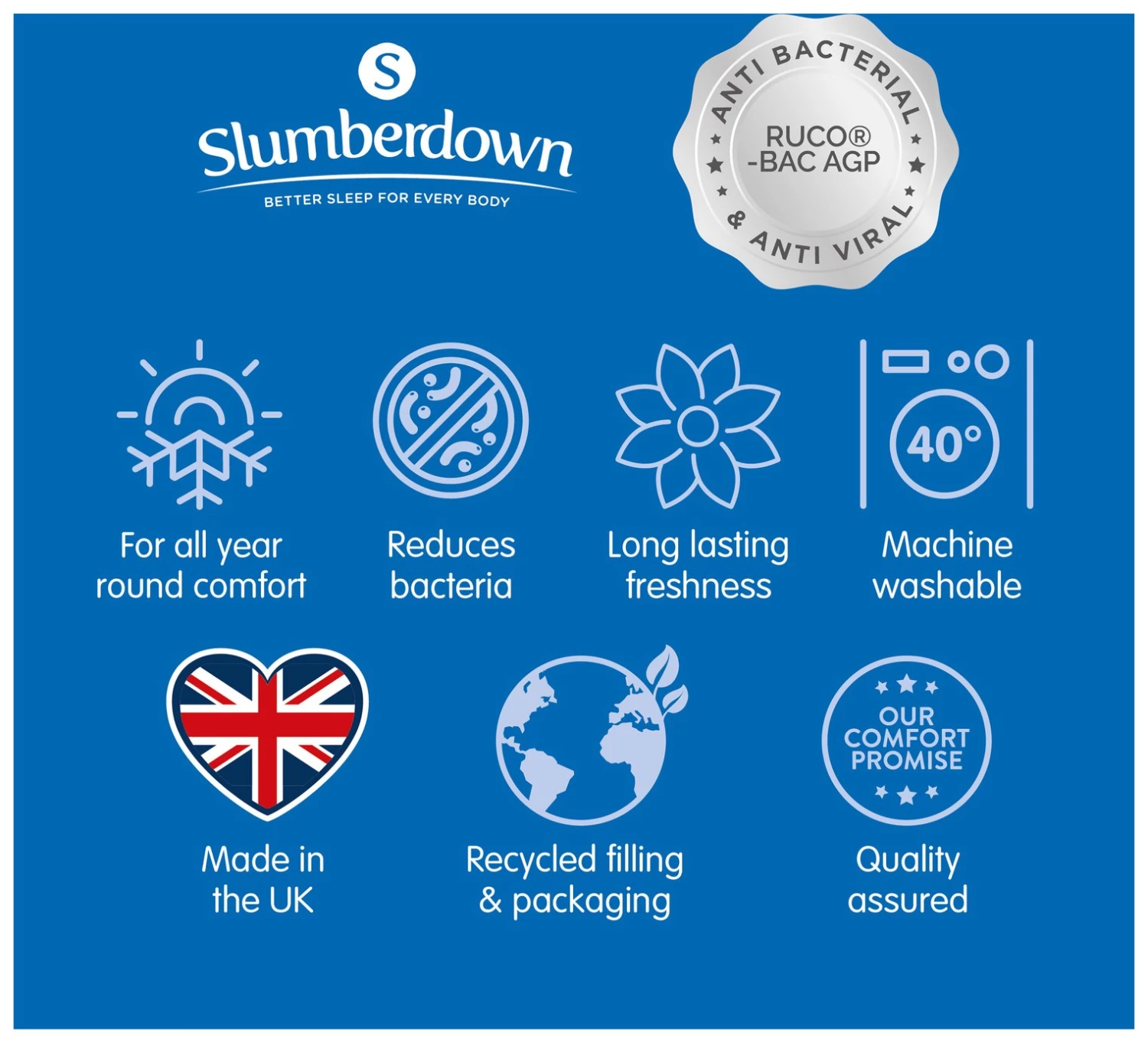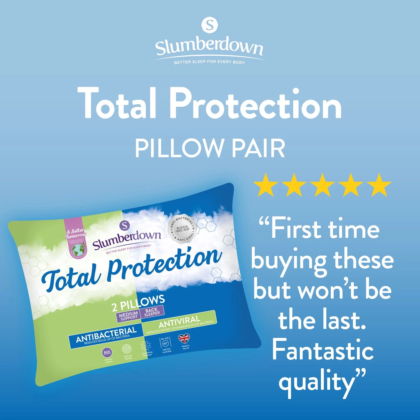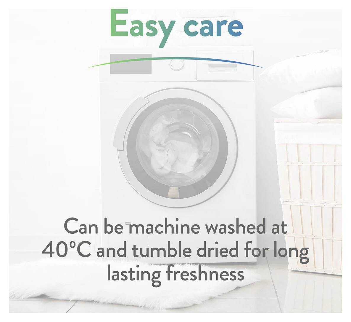 The Slumberdown total protection range has been formulated using a fast acting anti bacterial and anti viral treatment, allowing you to have all the benefits of an anti allergy product with the added anti viral protection, resulting in a fresher and healthier sleep space. The soft touch cover offers great support for your head and neck, ensuring you wake up refreshed, the pillow offers Medium support which is ideal if you sleep on your front or back. What's more the product is easy care which means its machine washable and can be tumble dried.