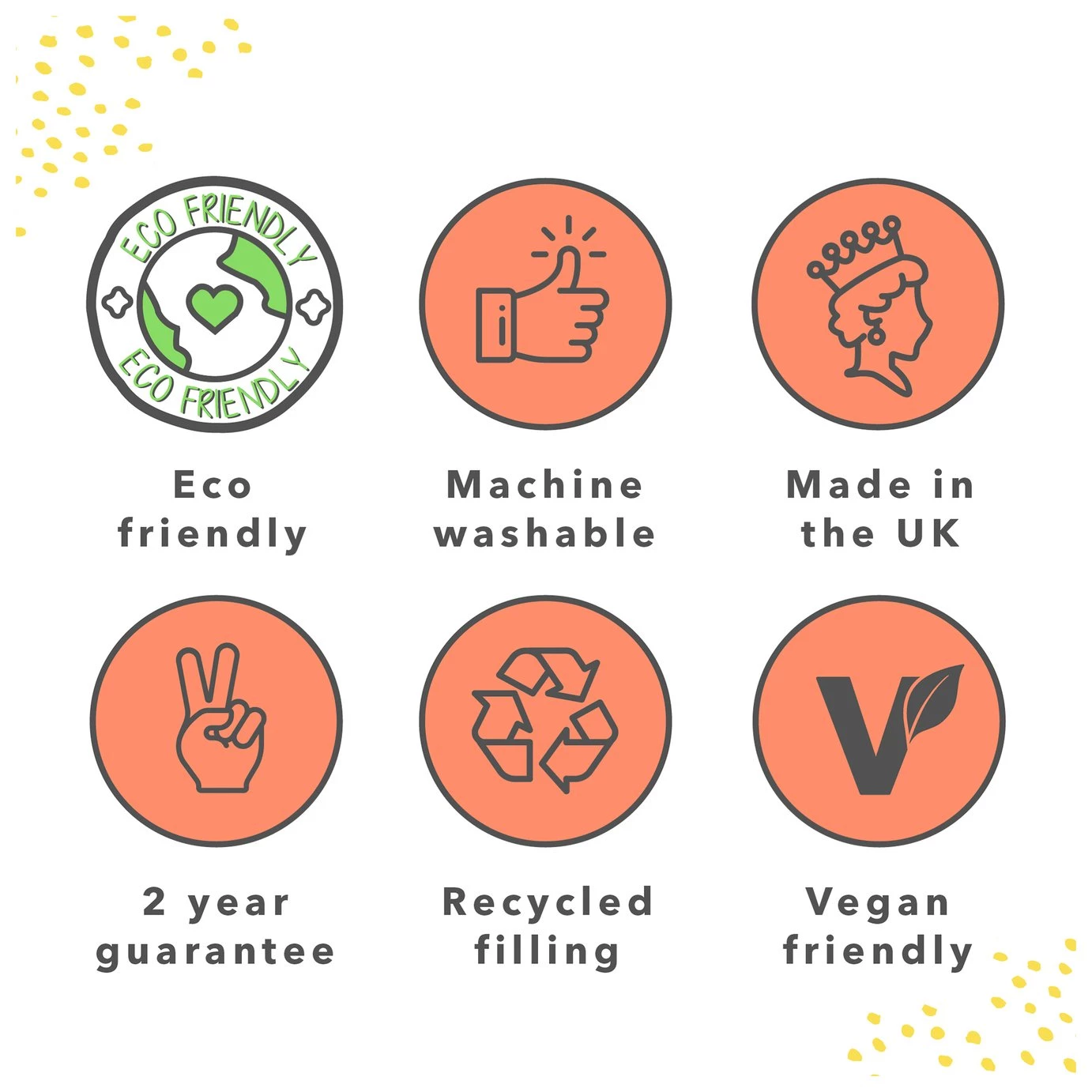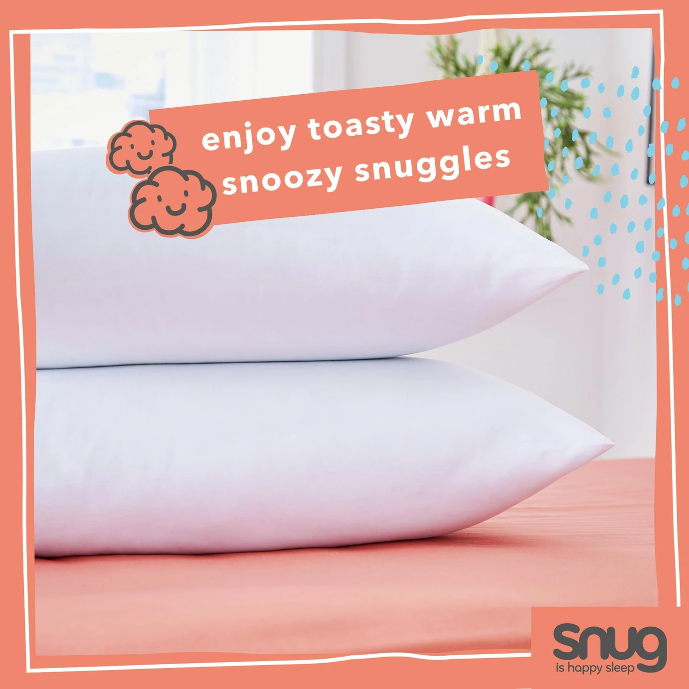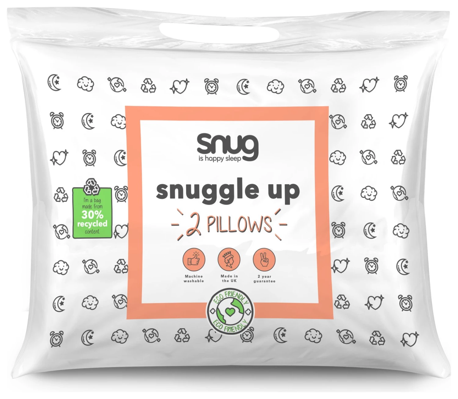 Snug Snuggle Up pillows are generously filled with a high loft to make them extra snuggly! We've crafted them to a medium/firm support so people who sleep in all positions can enjoy them. We've got you; your bedding is filled with recycled materials giving our lovely planet a helping hand. We care so you can be carefree, the squidgy fibres were once plastic bottles that have enjoyed a wonderful makeover. Our packaging is made from 30% recycled materials and can be fully recycled.